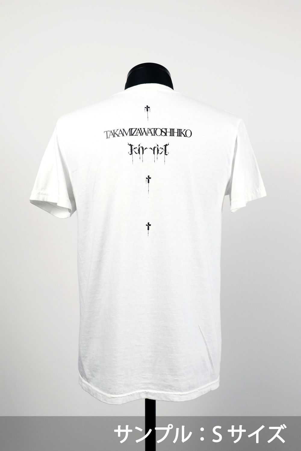背面には「TAKAMIZAWA TOSHIHIKO」とkiryuyrikのロゴとクロスをプリント。