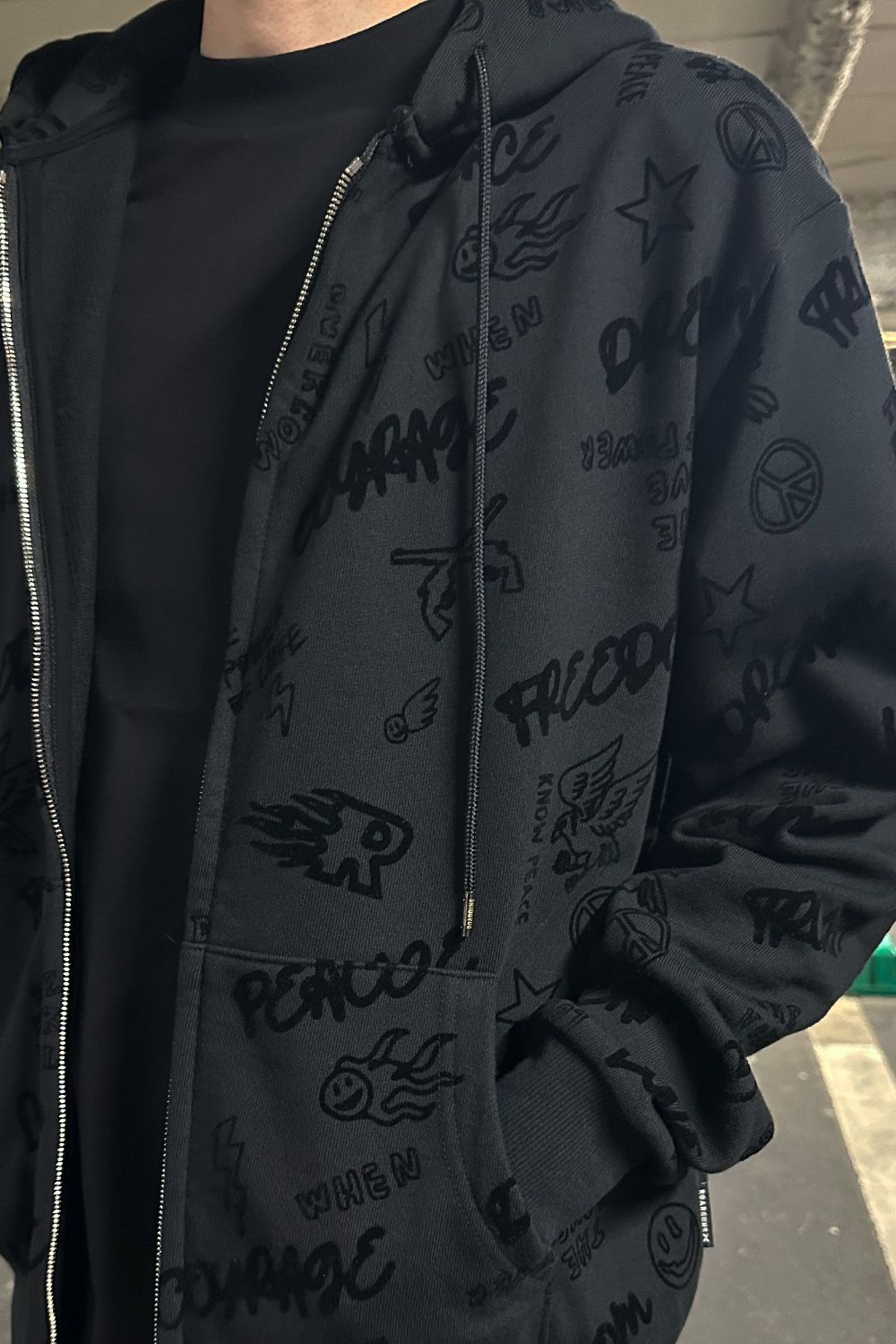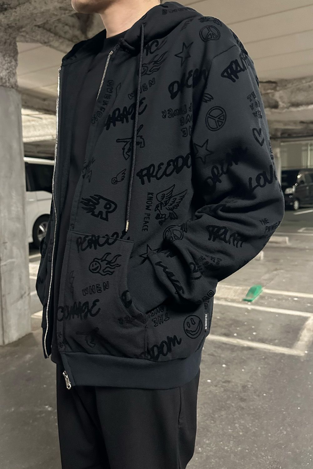 パーカ:FLOCKY PRINT HOODIE ブラック サイズ2(M) / roarguns