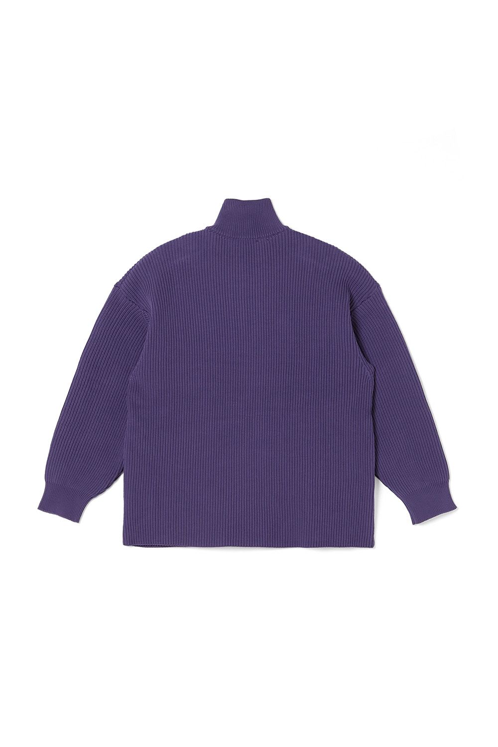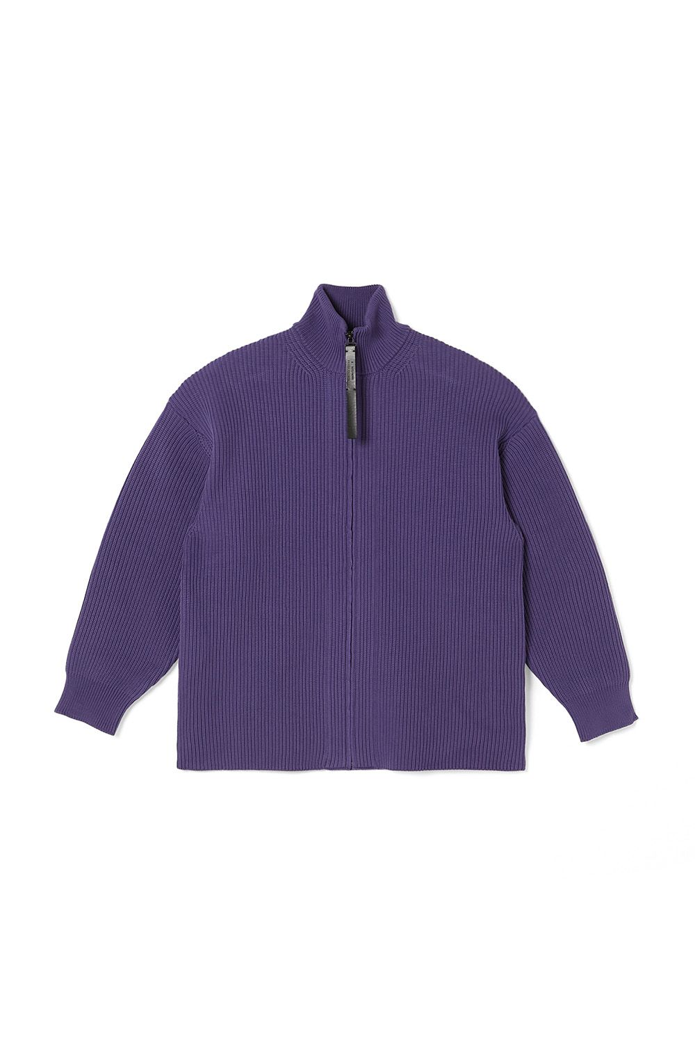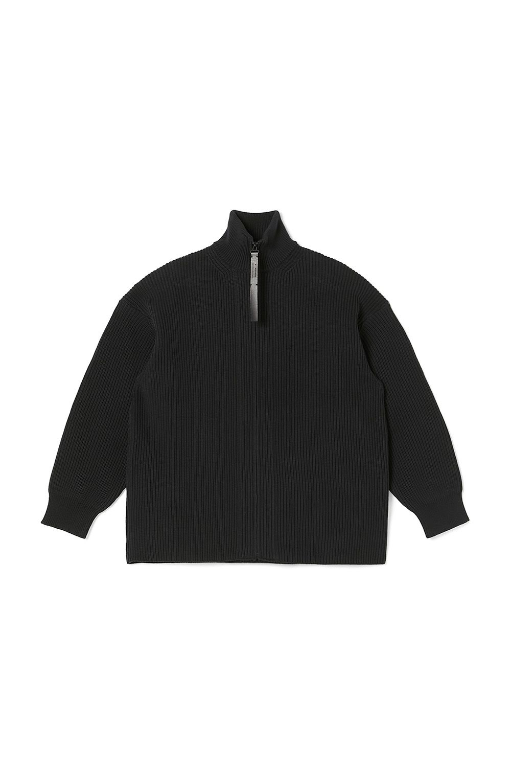 片畦編み。裾はリブなしのソリッドなデザイン。フロントにはブランドロゴを刻印したオリジナルの引き手付きのファスナーを採用。
