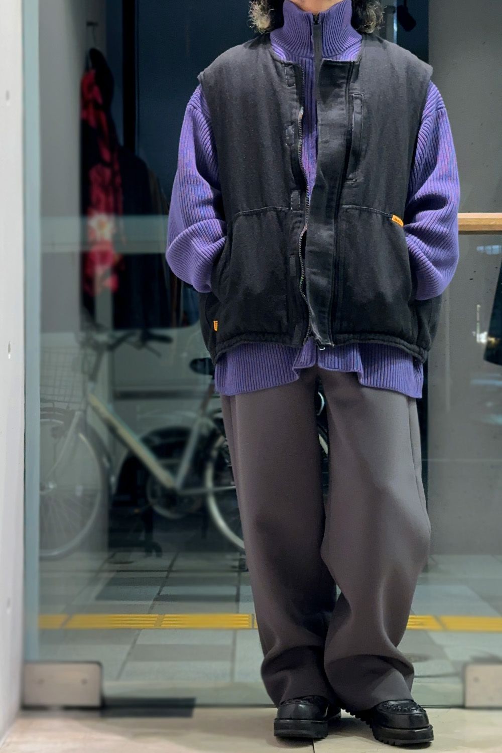 色味があるアイテムは真冬直前までは見せていきたいのでベストを新作のワイドパンツと合わせています。