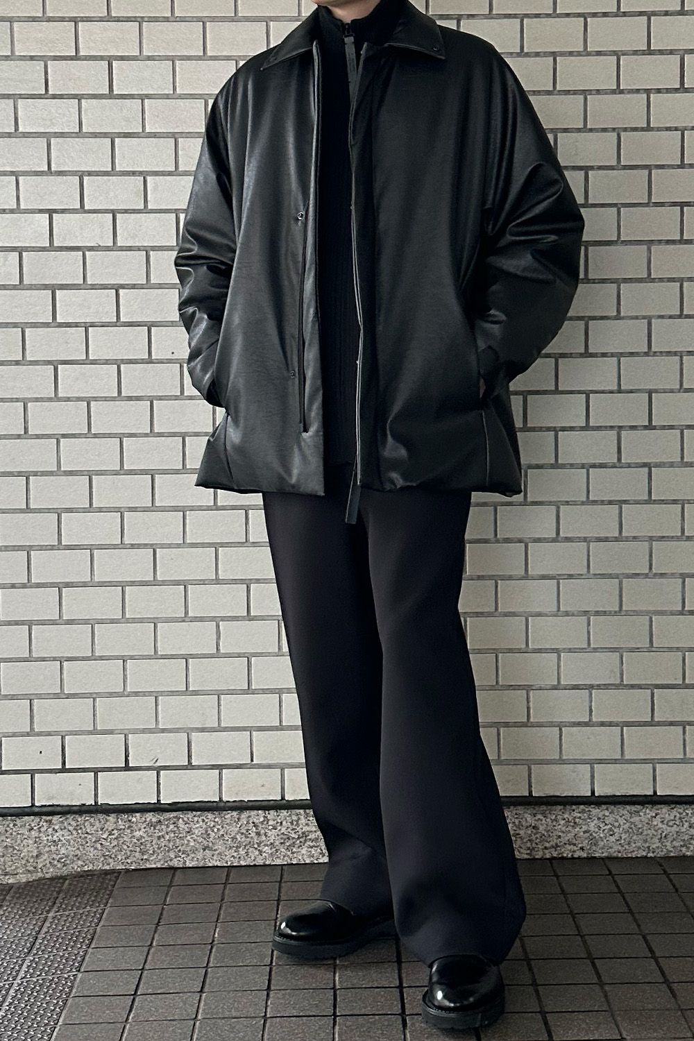 パンツはN.HOOLYWOODが得意とするスラックスベースのイージーパンツ、形がある程度残るしっかりとしたハリ感のあるポリエステル素材、生地に光沢もあり上品で高級感のある仕上がり、また、自然なストレッチ性も備わり見た目以上に着用がしやすいアイテムです。