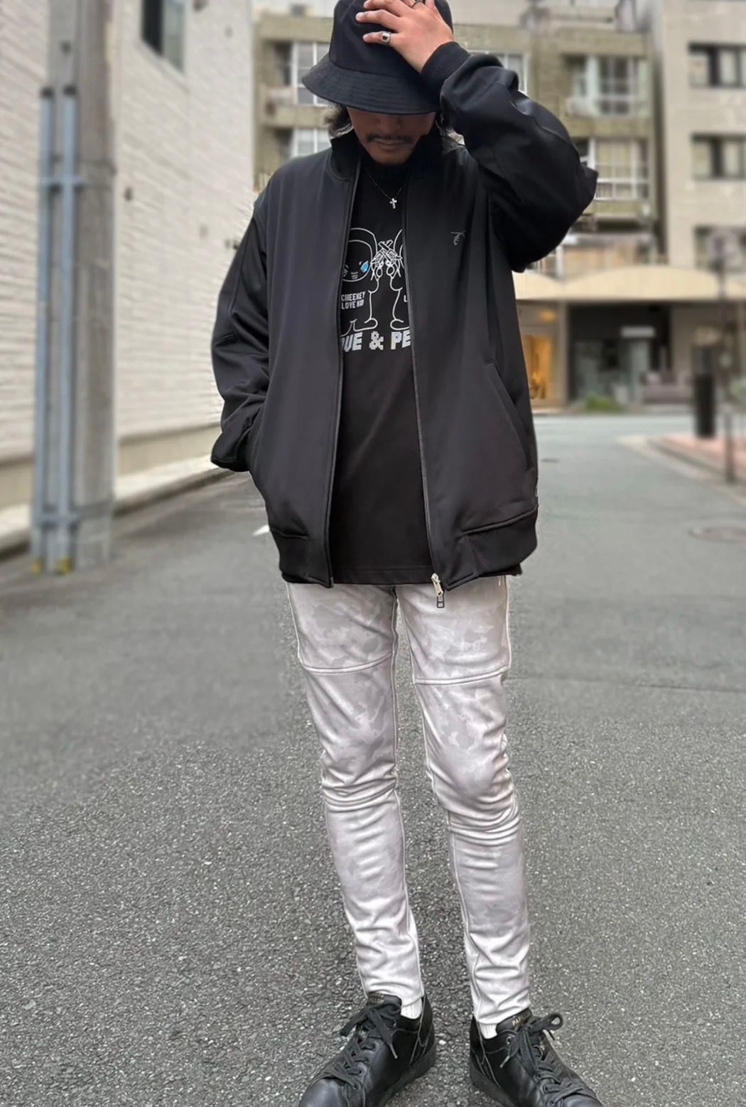 インナーは最近人気のチーキーTシャツ、インナーにキャッチーなキャラクターのTシャツがアクセントです。