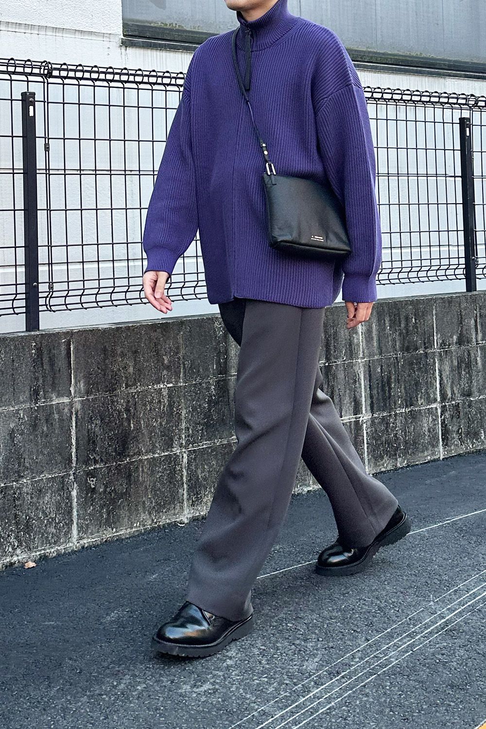 細身のシルエット。履き口の表側にN.HOOLYWOODオリジナルロゴをエンボスで刻印。