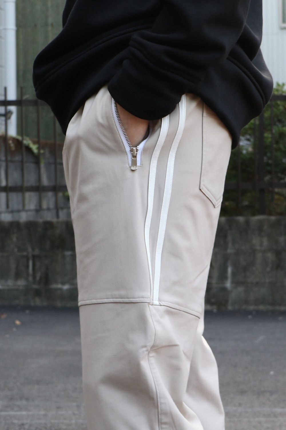 スウェット、ジャージ素材を合わせたハイブリットなパンツです。
