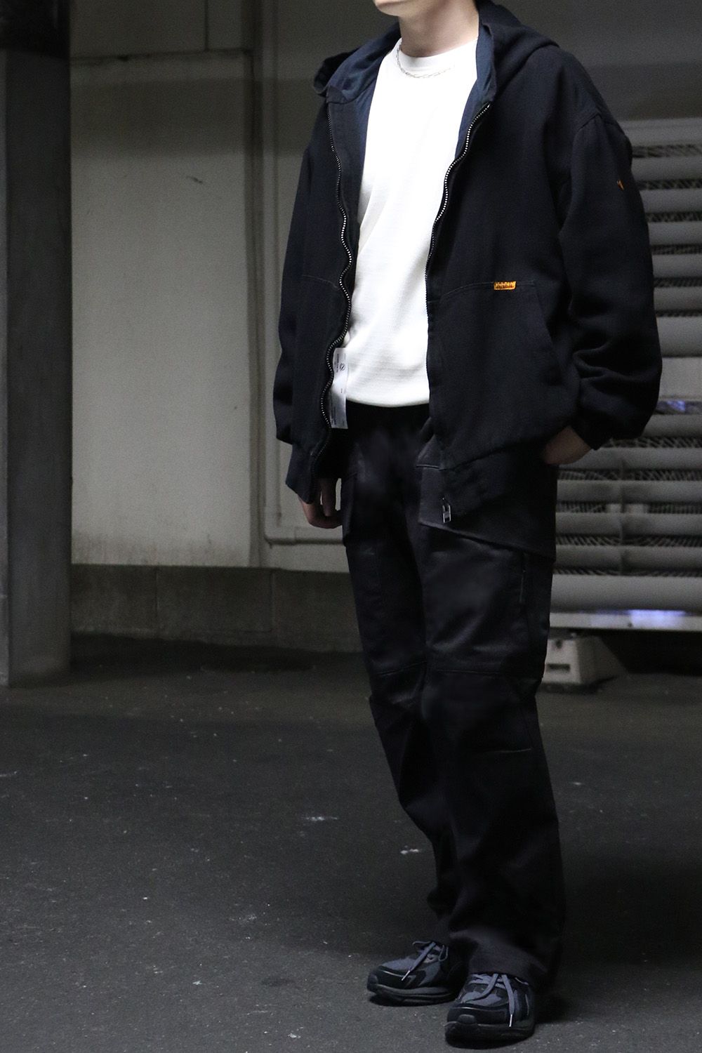秋冬おすすめのN.HOOLYWOODのワイドパンツ、特殊警察のウェアからインスパイアされたデザイン、経年変化も楽しめるしっかりとした生地感が魅力のアイテムをコーディネート