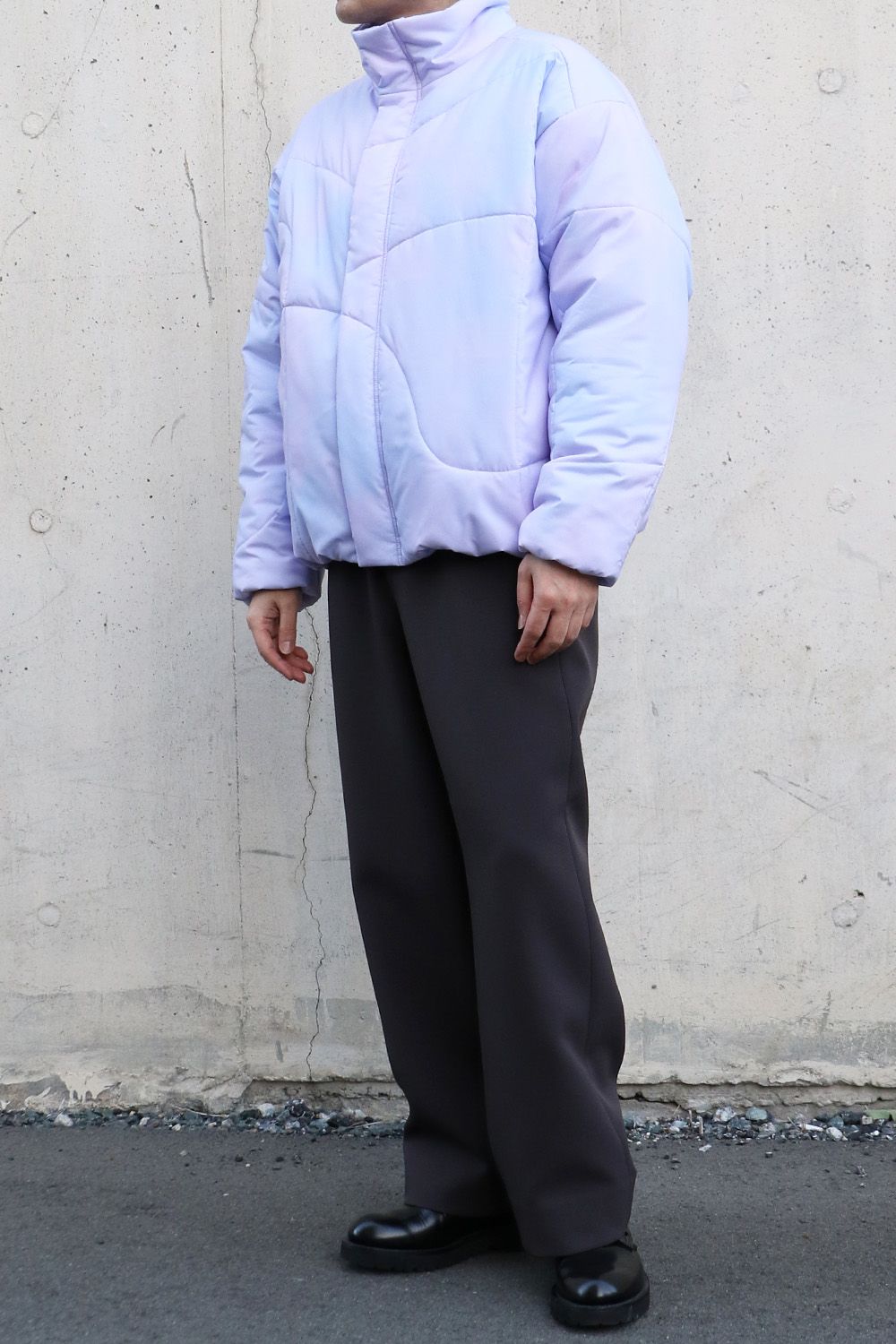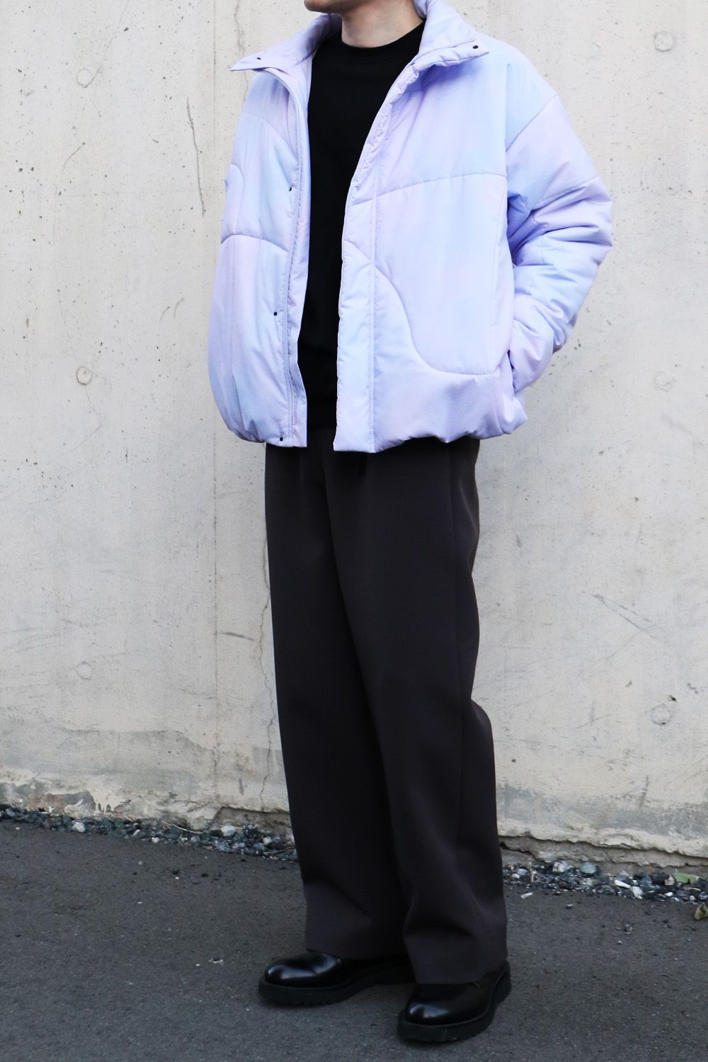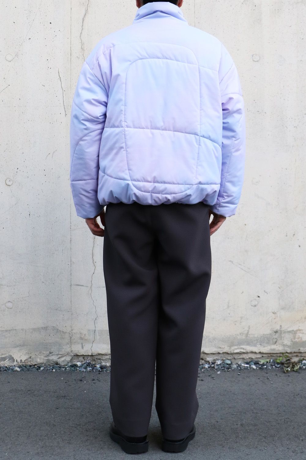 製品のカラーはデザイナーの尾花氏が見つけたヴィンテージ品の色味が経年変化、日焼けで淡くなっていた状態だったため、マーブルカラーをグレデーションのプリントで再現、トレンドのショート丈、身幅やアーテムなどにゆとりを持たせた25FWのコレクションらしいアイテムです。