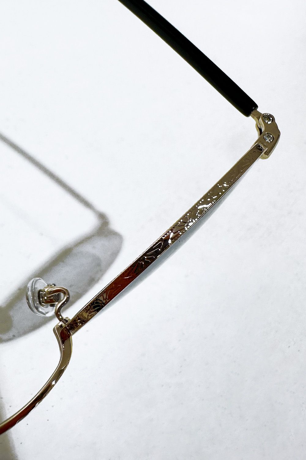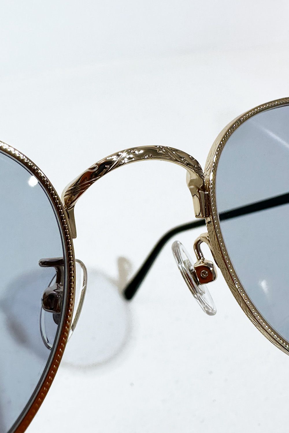 上面と前後に柄が入った3次元プレスの彫金ブリッジ、メタル特有の線の細さの中に、リム・ブリッジ上部には細かなハワイアンジュエリーを彷彿させる彫金。