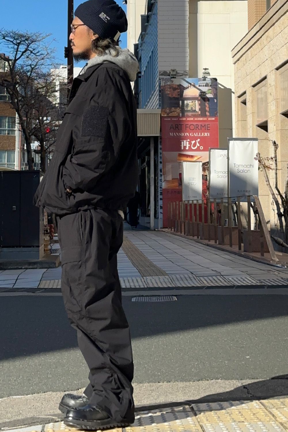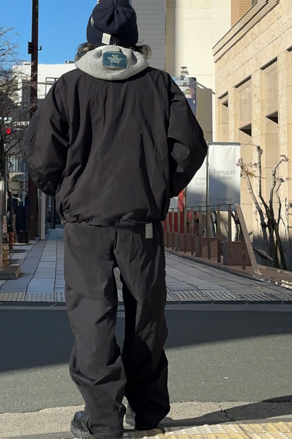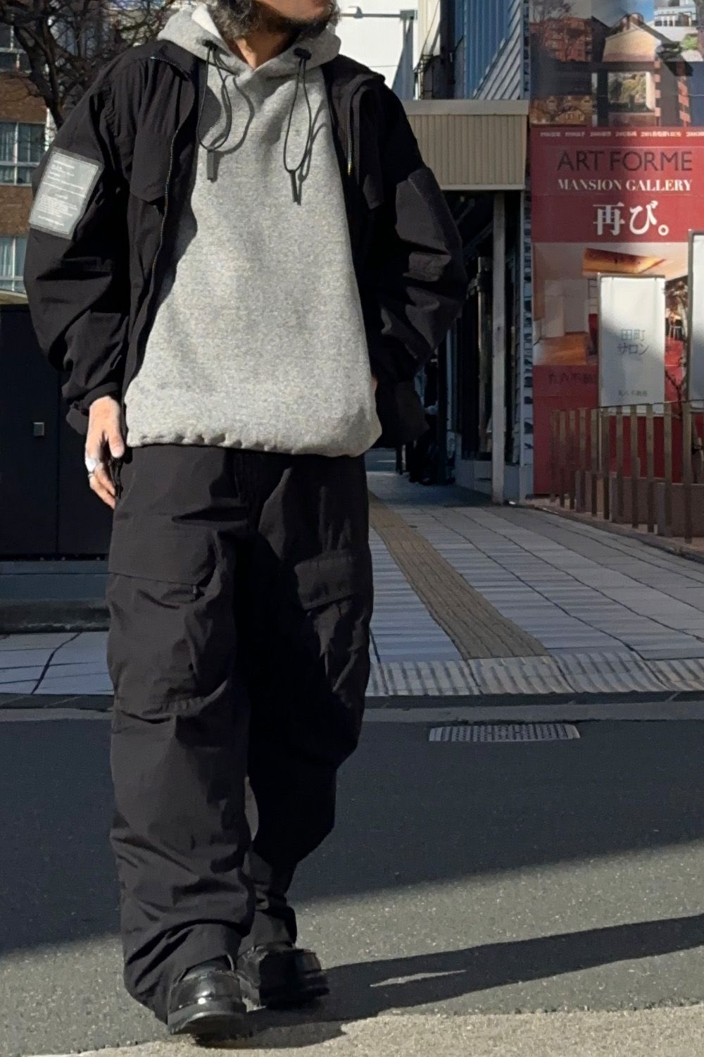フード部分のスピンドル、アームのミルスペックのパッチなどデザインのアクセントもあるのでパーカだけでもかっこいい!ちょっと丈が気になるようでしたら、内側に入れるとコンパクトなブルゾンともバランスが良くなります。