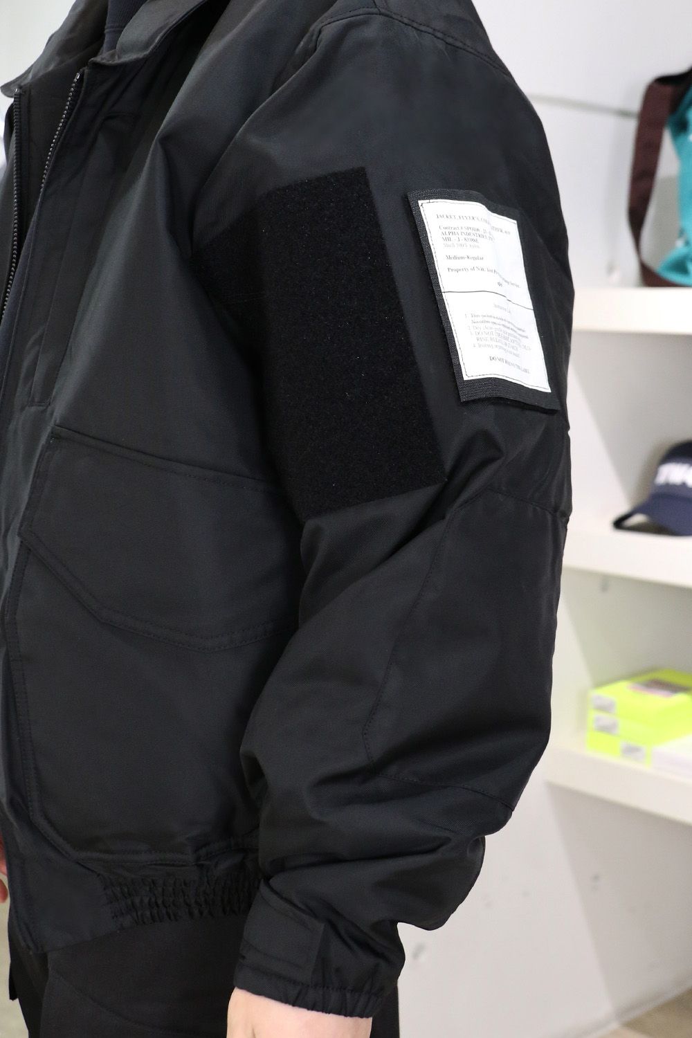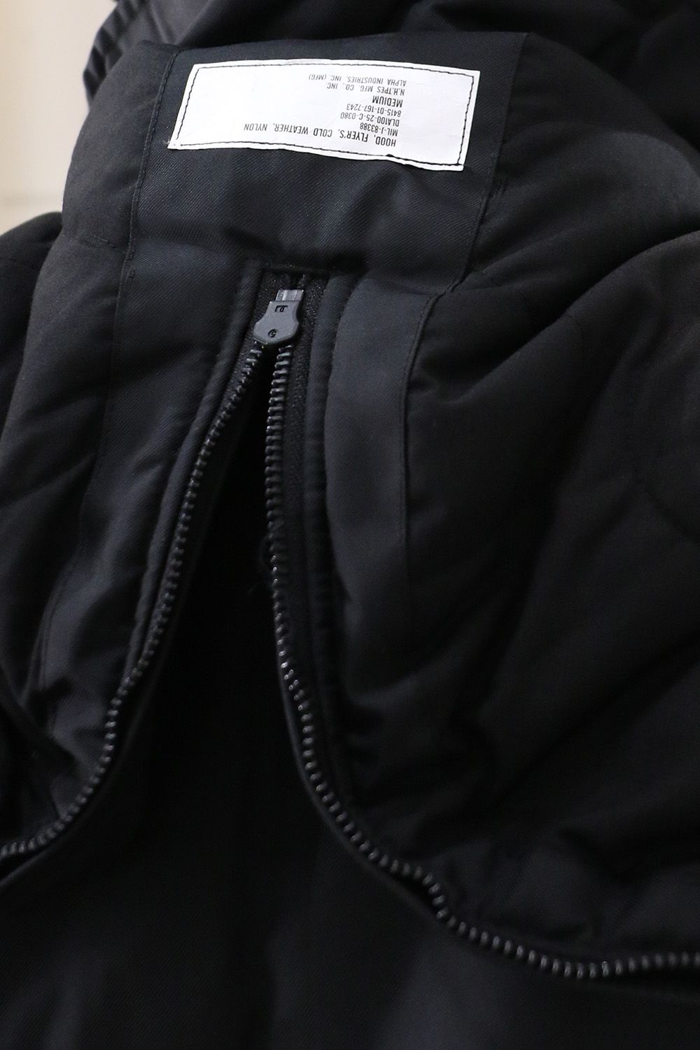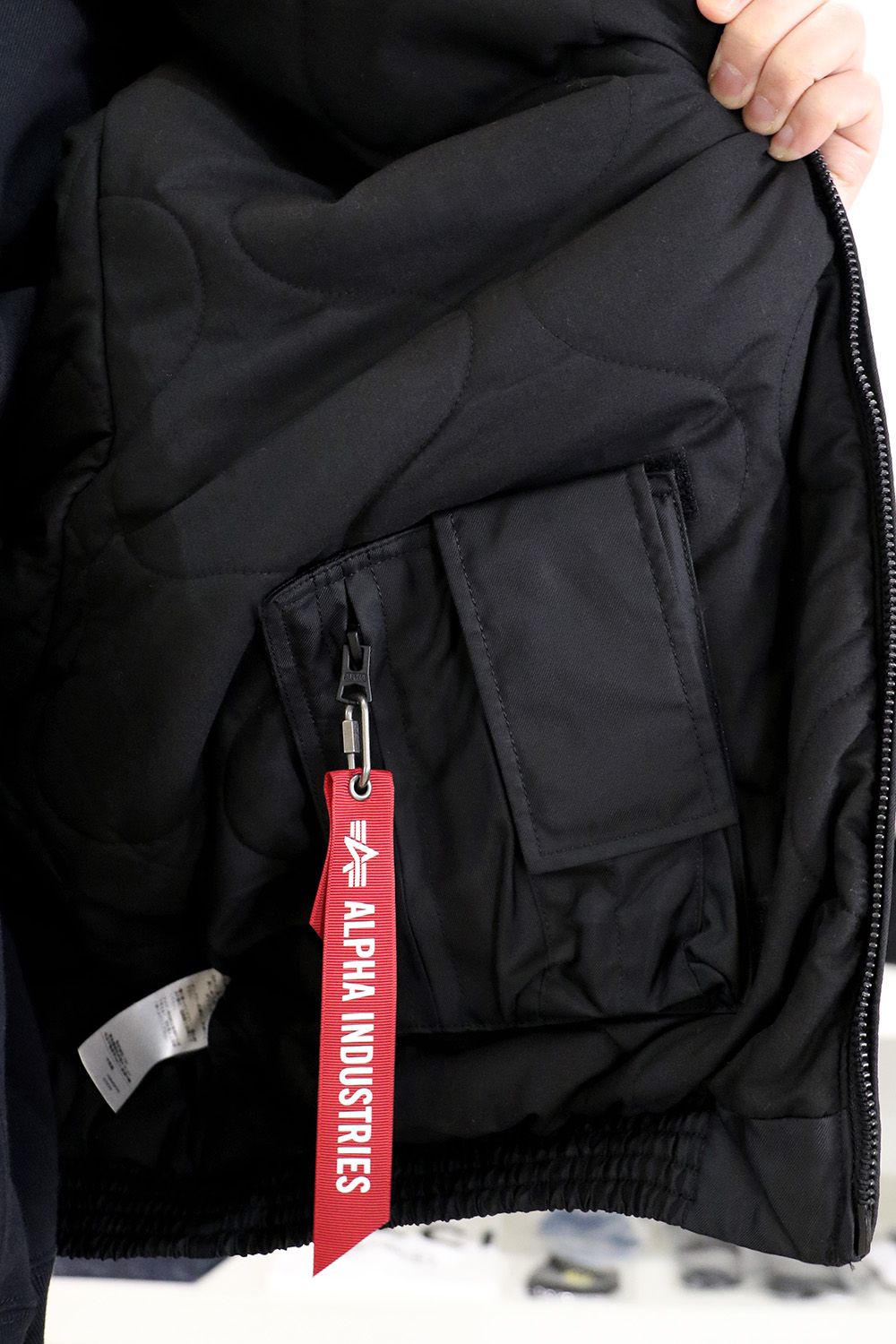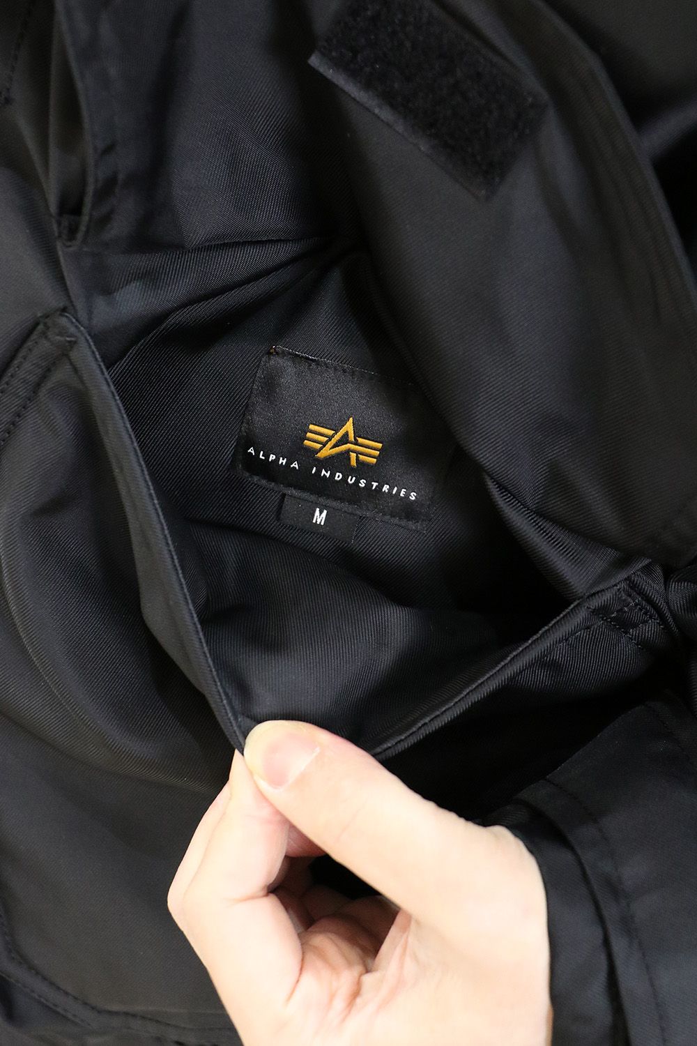 フロントポケットの内側にはALPHA INDUSTRIESのタグをアタッチ。