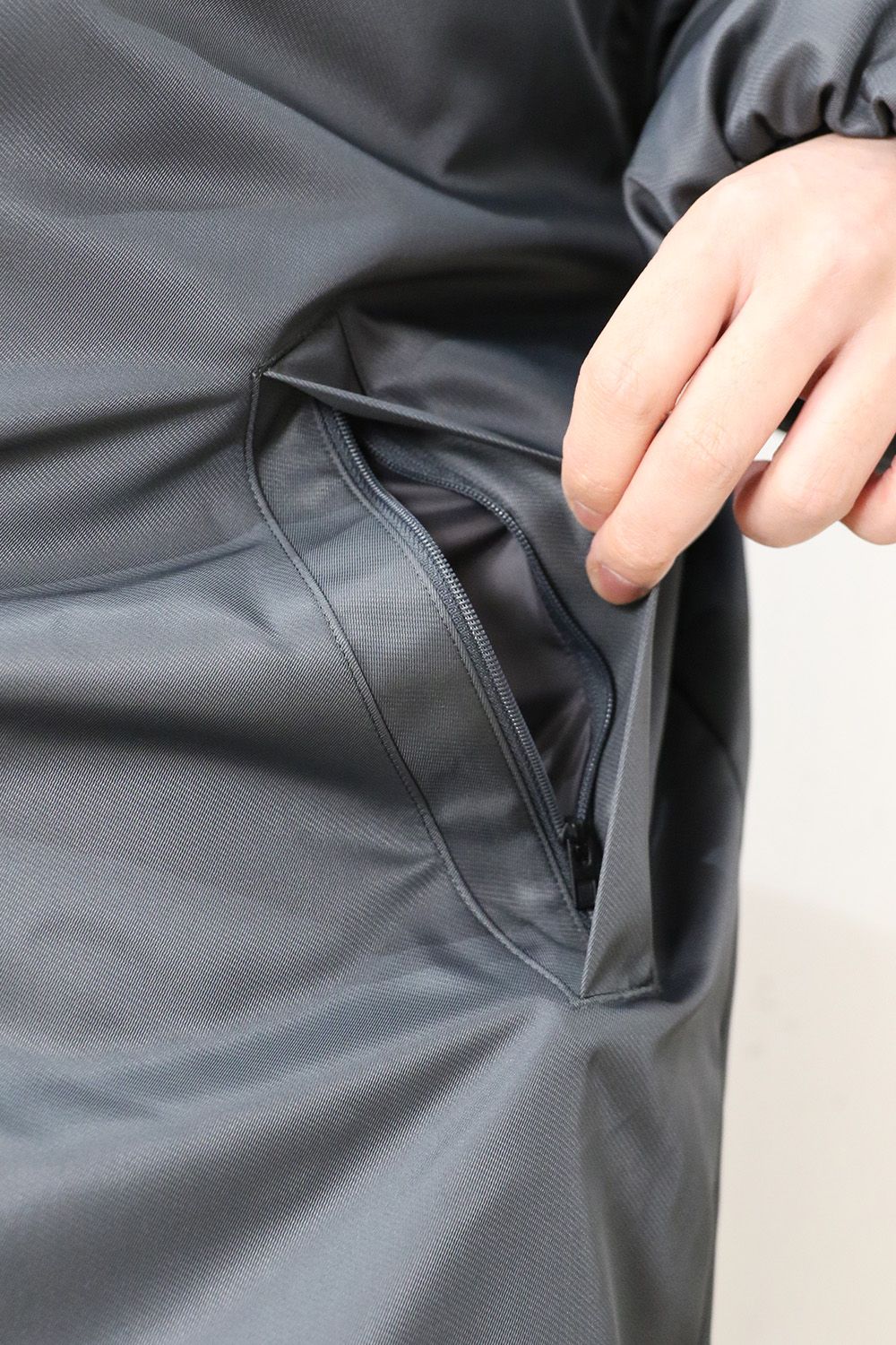 袖口にはゴムを内蔵し、縫い目が内側に入り込むようにデザイン。