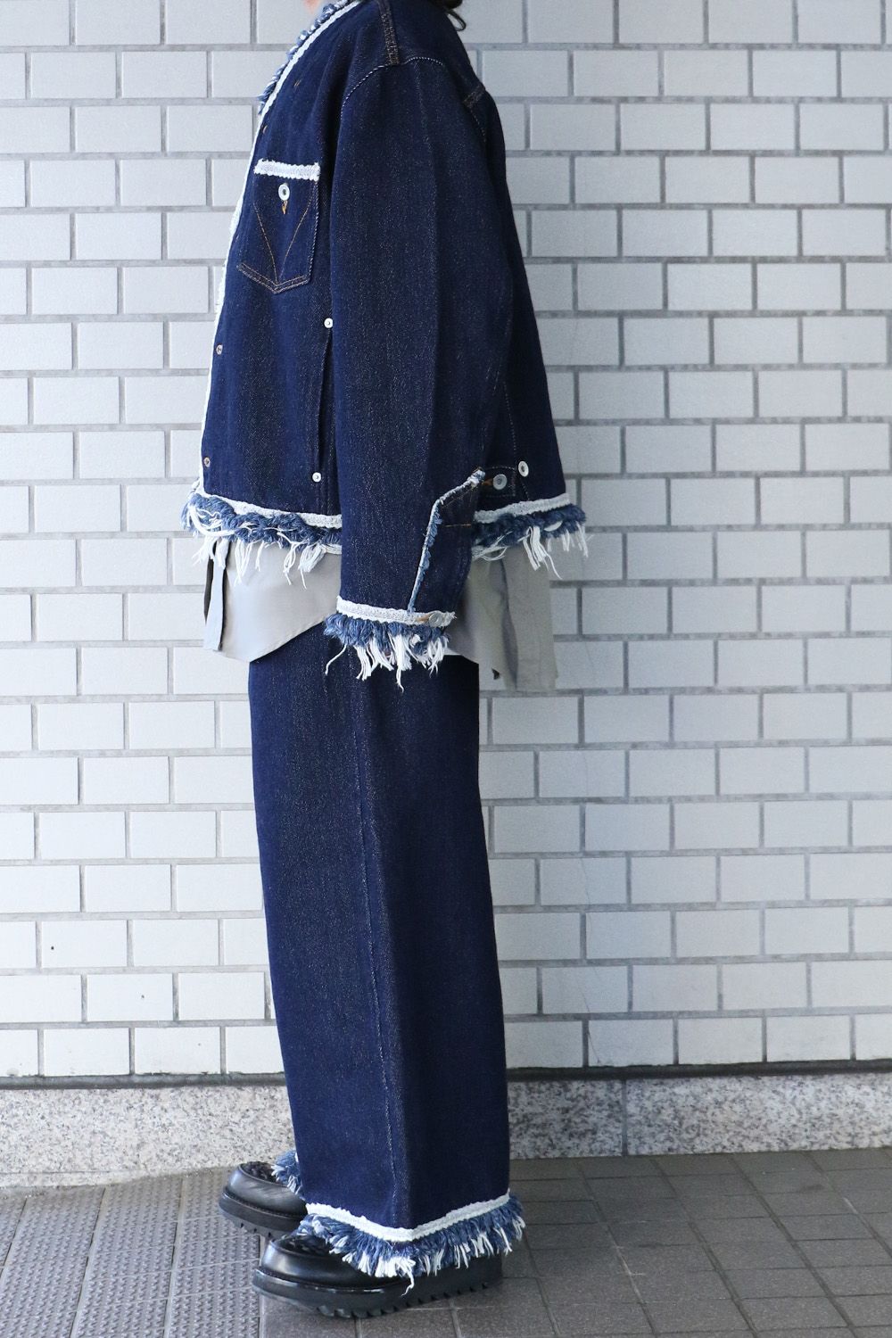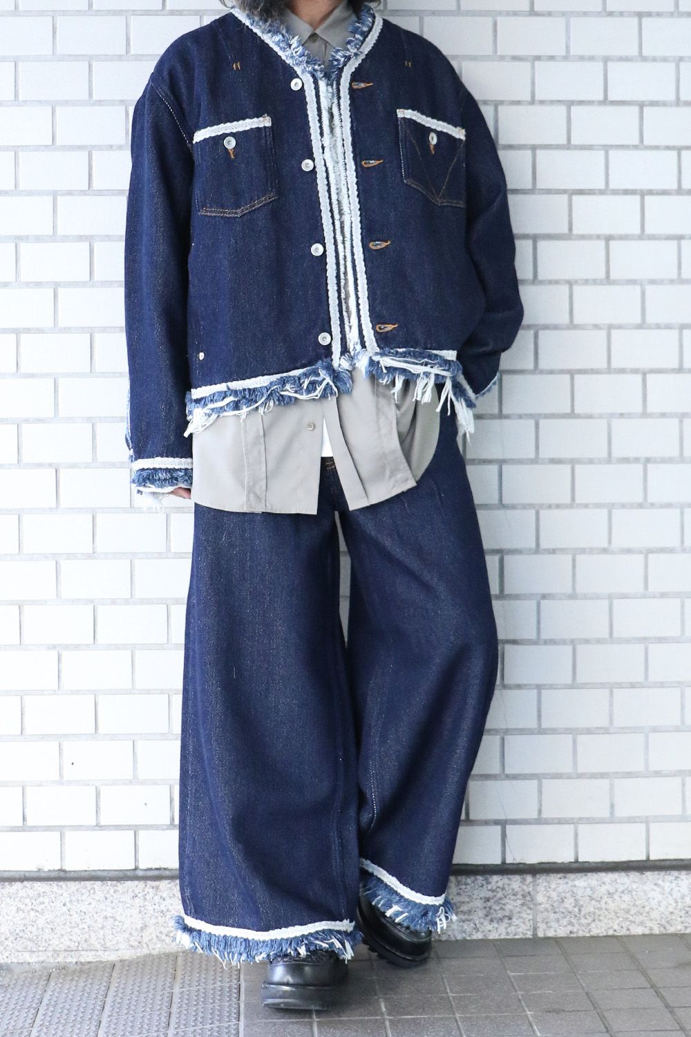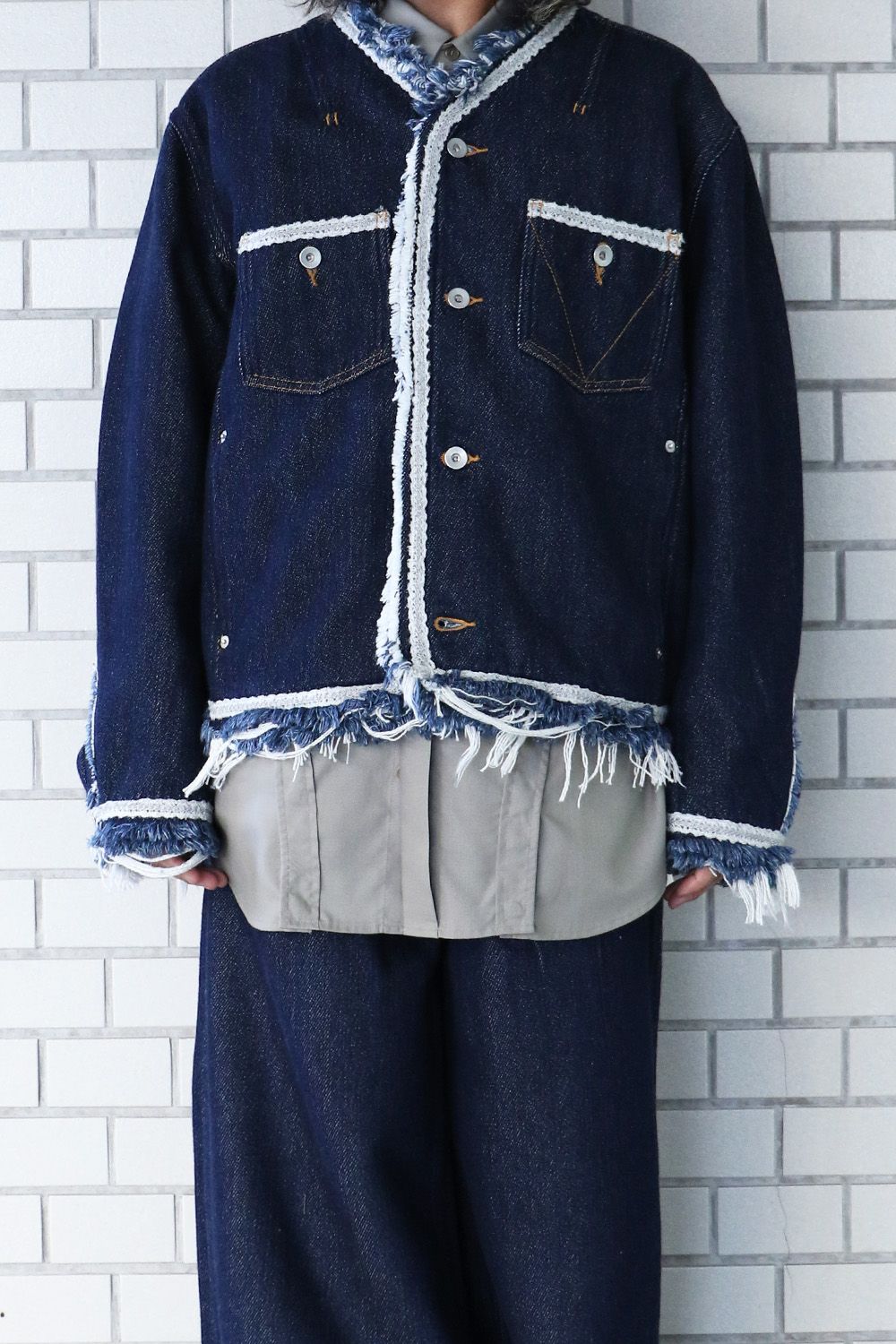 アウター:Lace tape denim BL インディゴ サイズ1(S) / meagratia