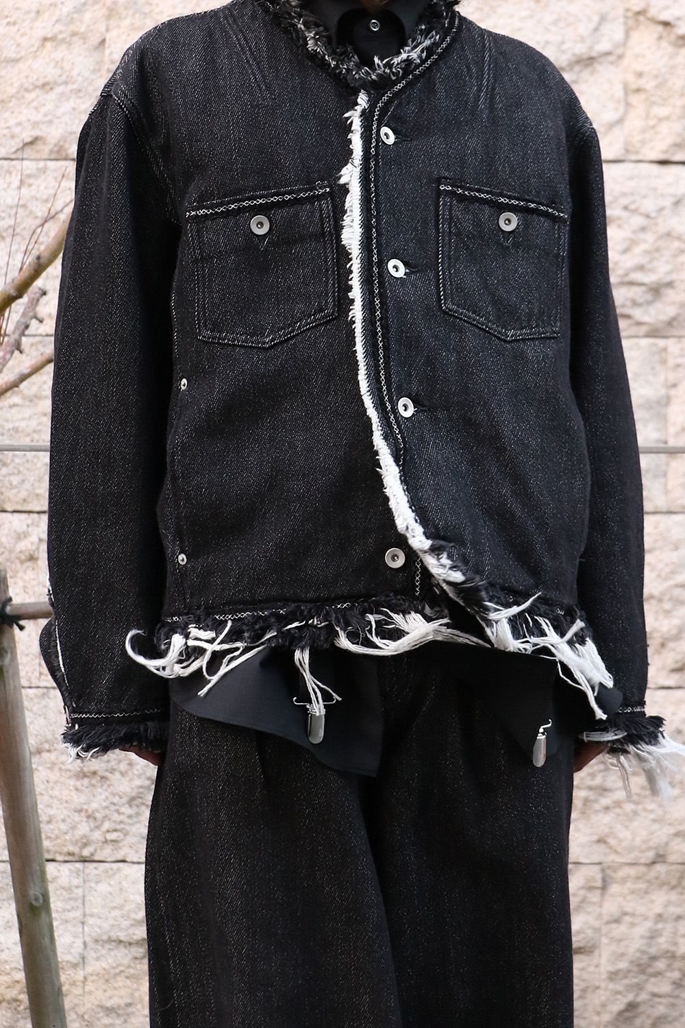 デニムブルゾン:Lace tape denim BL ブラック サイズ1(S) / meagratia