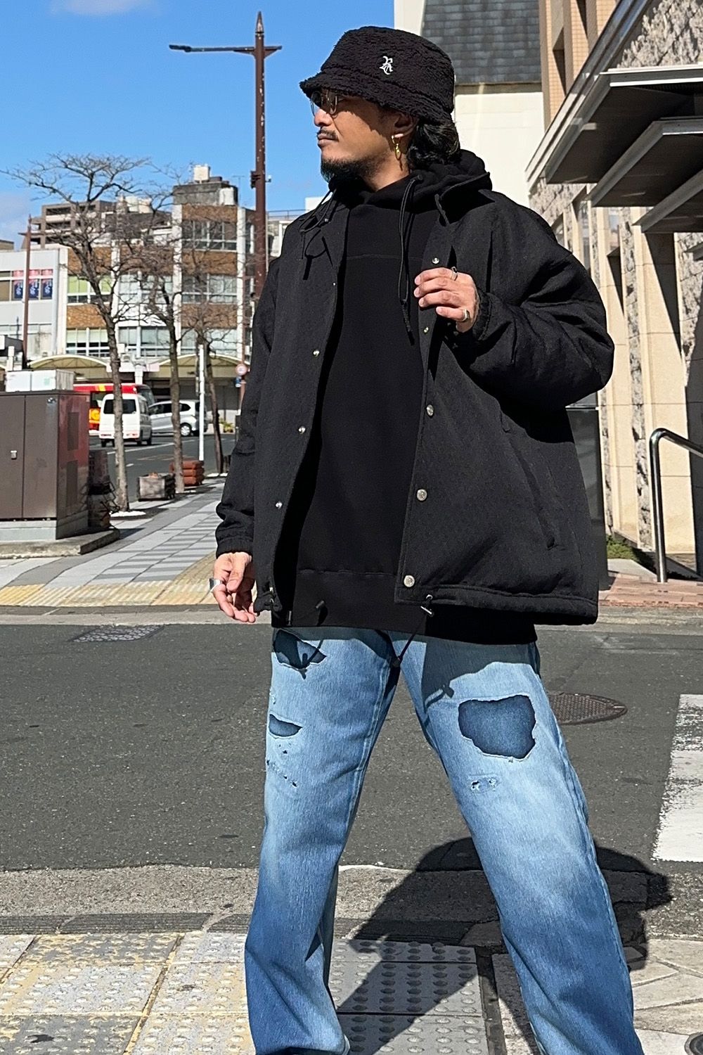 RESOUND CLOTHINGのおすすめアイテム、KINGデニムジャージを使用してコーディネートを組んでみました、まだまだしばらく冬の寒さが続きます。寒い時期でもお使いいただけるスタイル、ご覧いただけましたら幸いです。