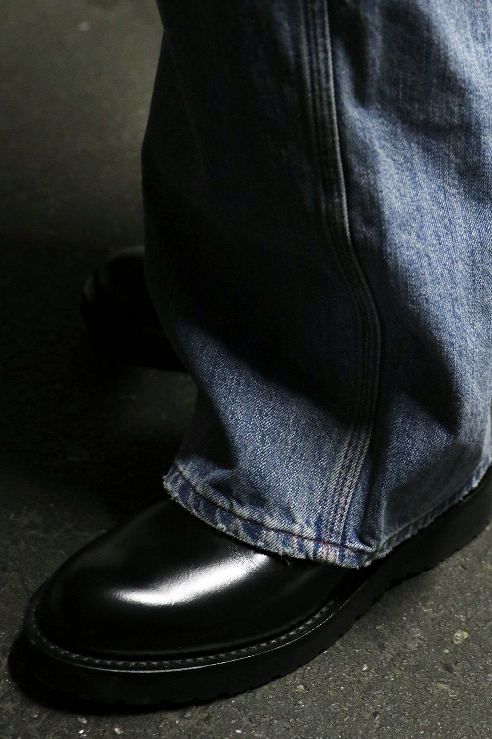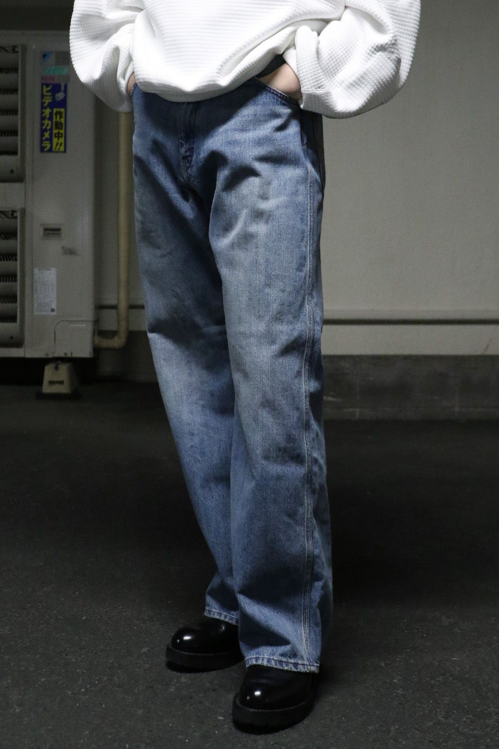12.6ozのデニムを使用。ブラストブリーチウォッシュ加工を施し、デザイナー私物のようなヴィンテージの風合いを再現。