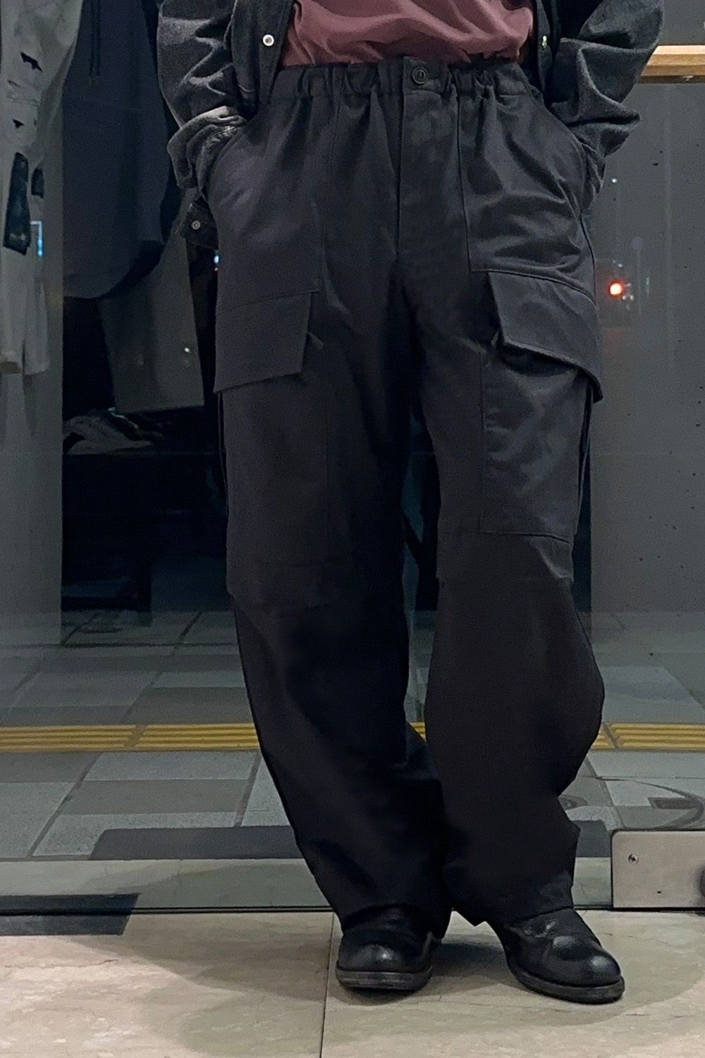 N.HOOLYWOODのボリュームあるカーゴパンツと、ミリタリーミックスをイメージしたコーディネート、Tシャツのカラーもアクセントです!