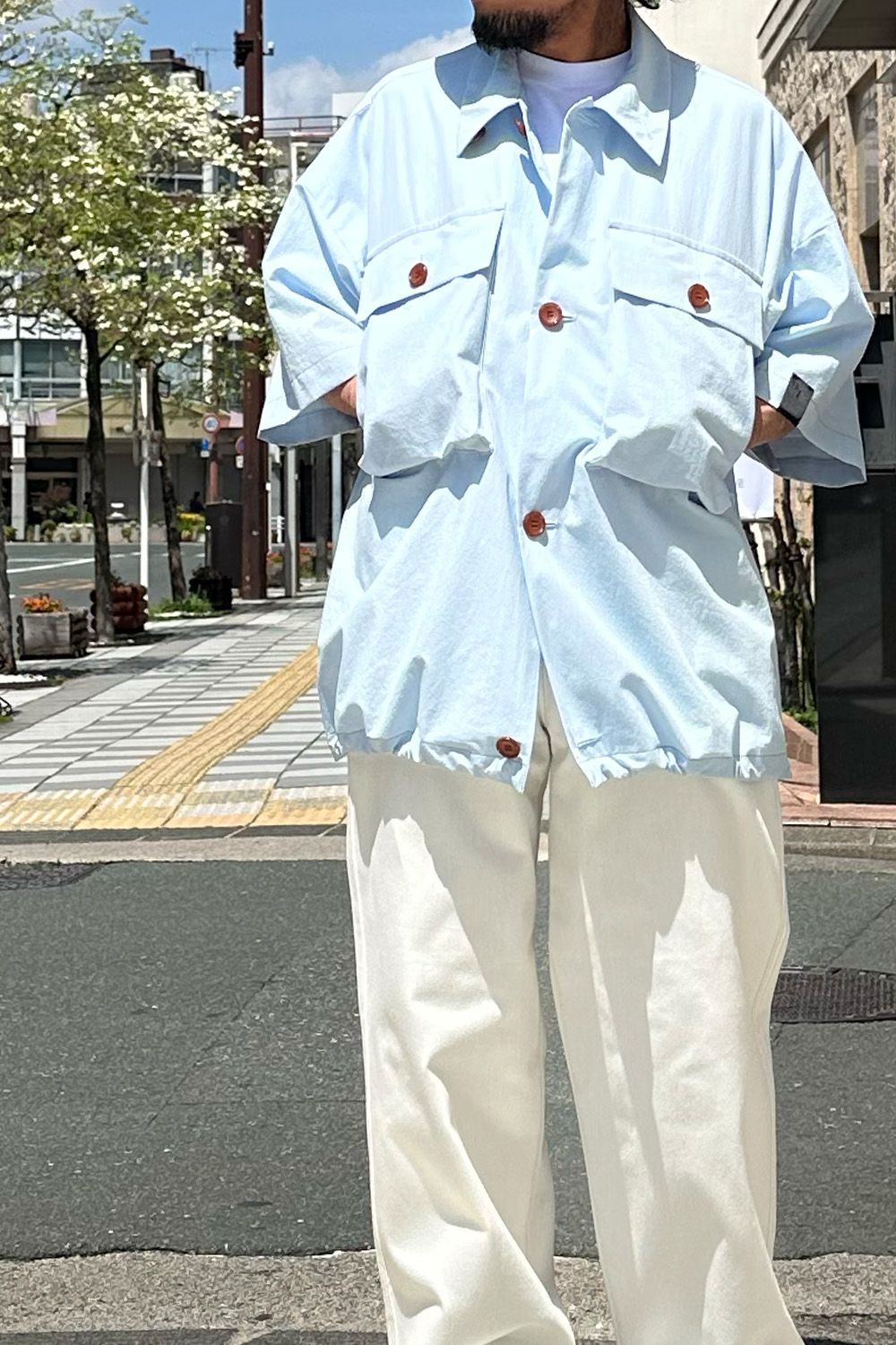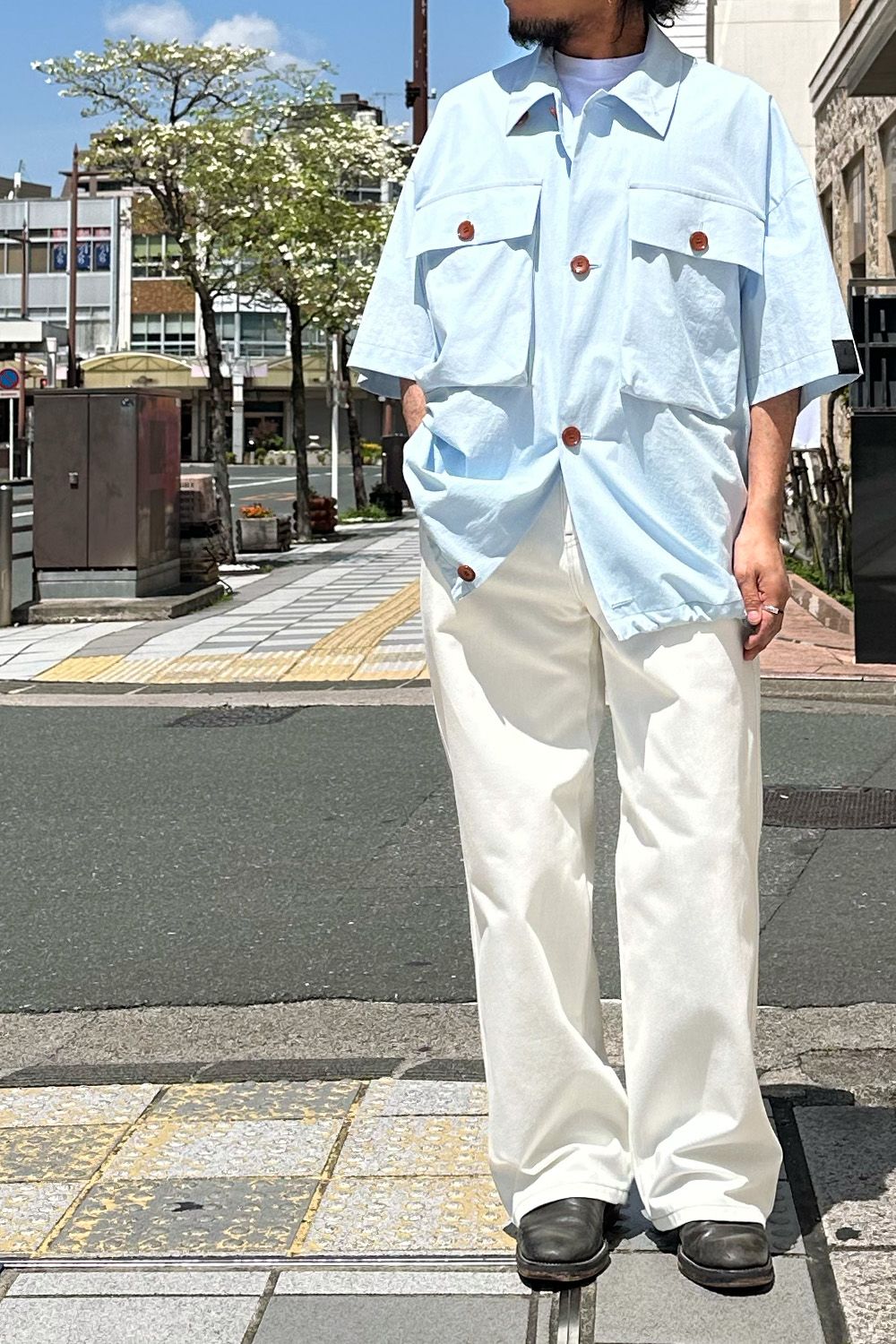 " ドライな肌触りとハリのある質感で、美しいシルエットをキープ、サファリジャケットから着想を得て製作されたハーフスリーブシャツ "