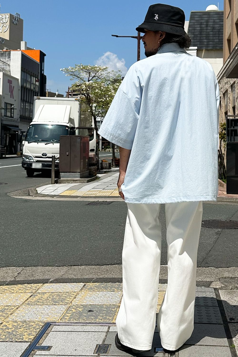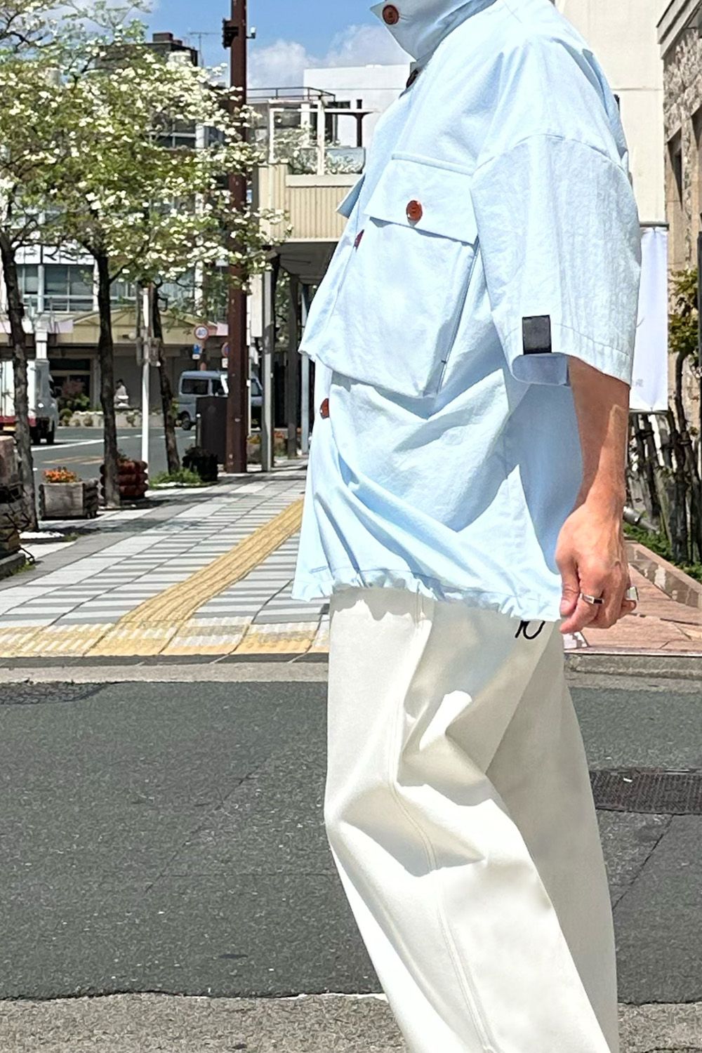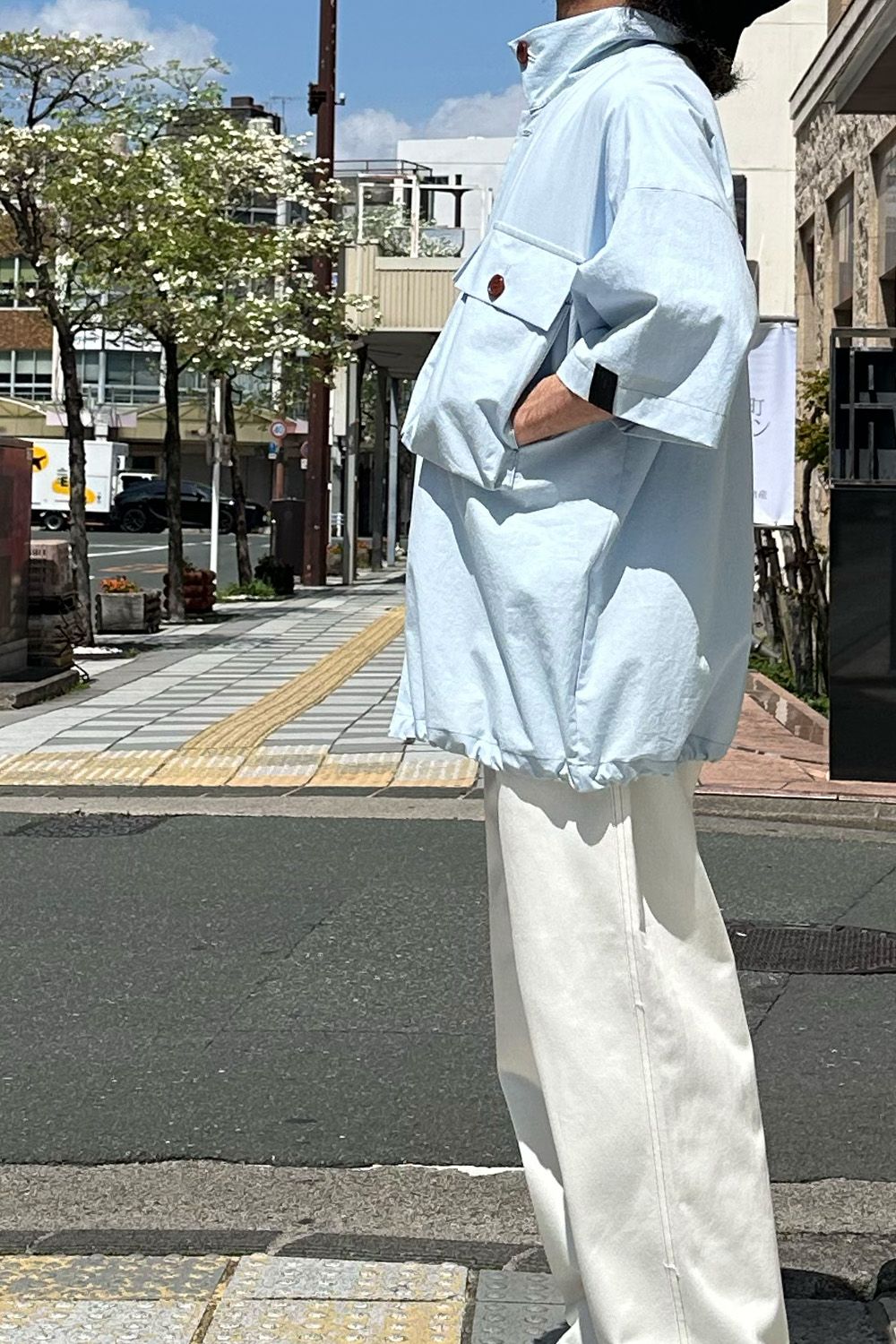 スタンドカラーにしたり、裾を絞るなど着方も調整できる服好きにはたまらない、一つのアイテムで色々と遊べるポイントがあります。ホワイトのデニムと合わせ、インナーもホワイトにしたとても清涼感のある爽やかなコーディネートにしてみました。