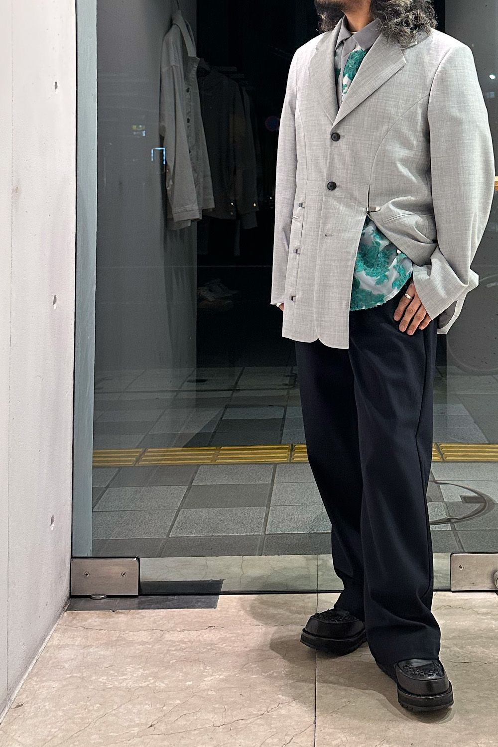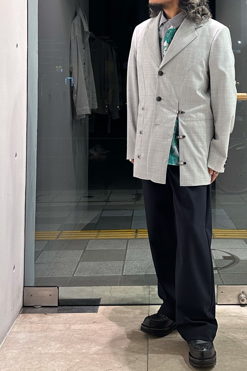 今季のジャケット、裾の隙間から、柄を出すのがオシャレですね!