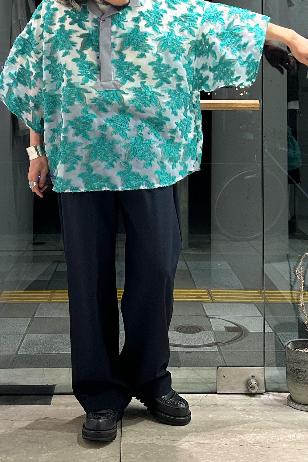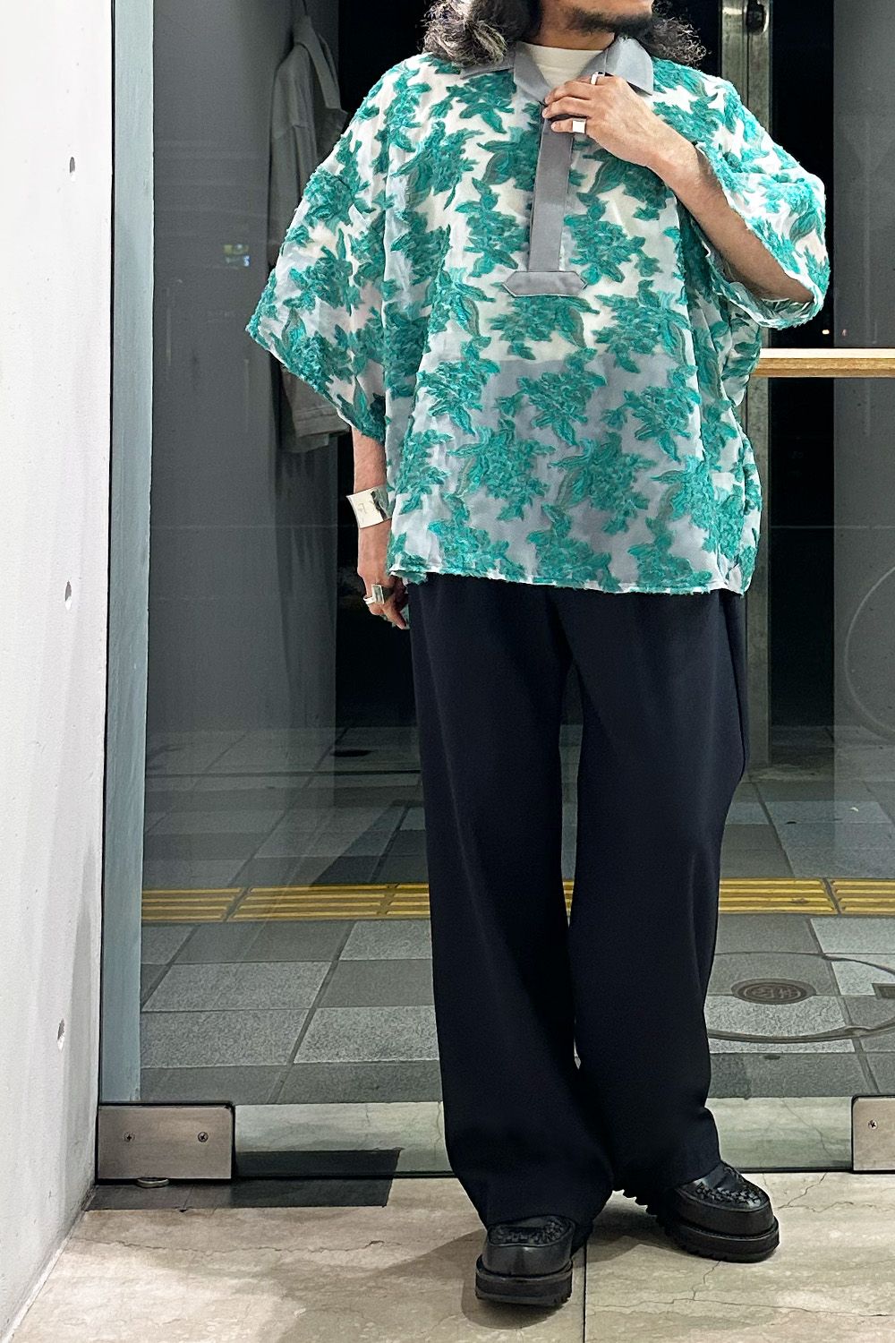 シャツ:Mesh jaquard skipper shirt グリーン サイズ00(フリー) / meagratia