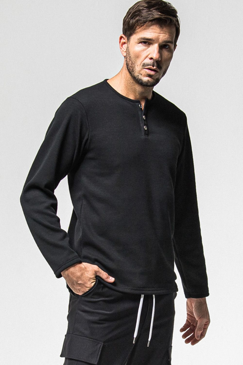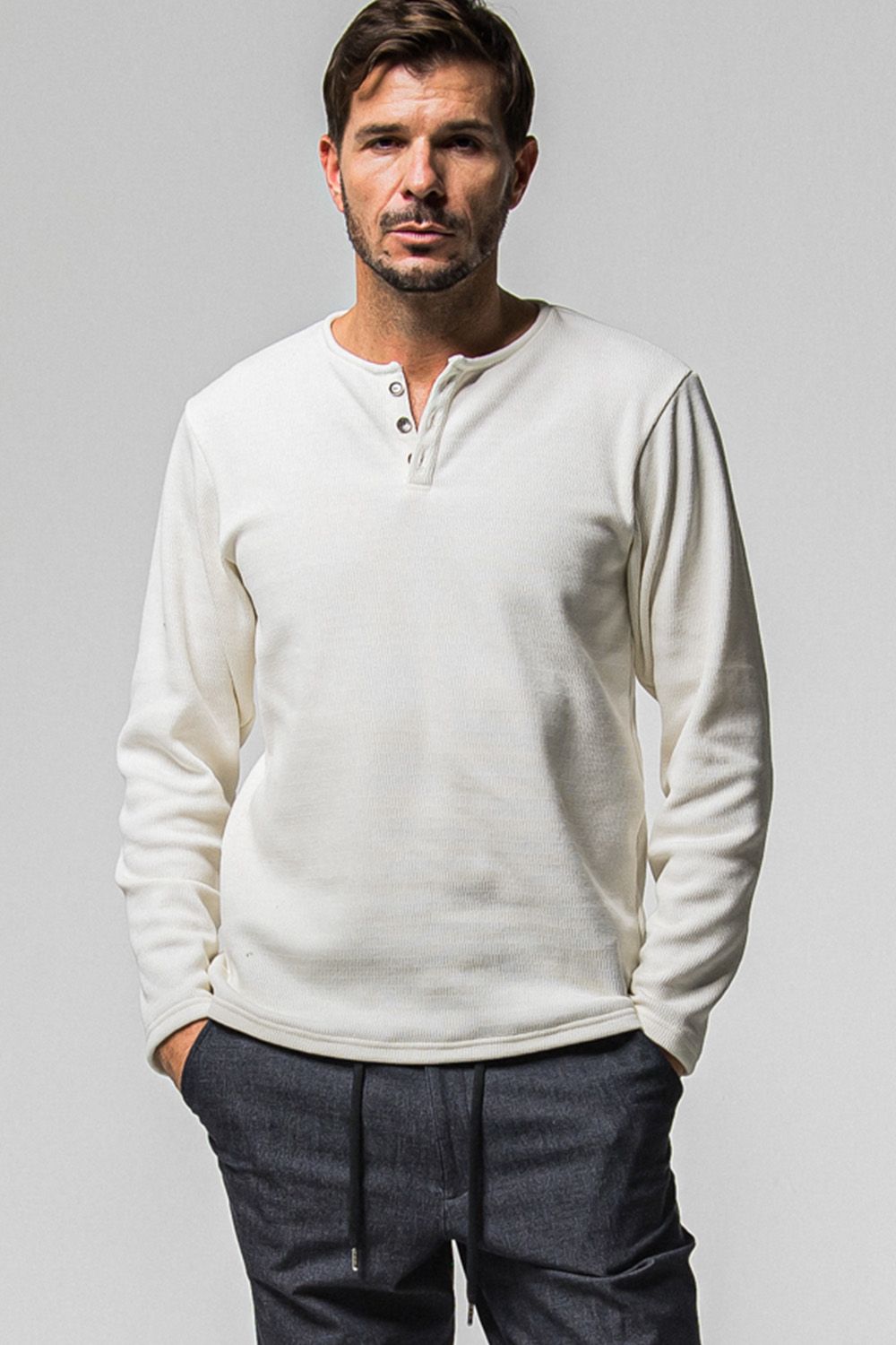 定番人気のタイトシルエットで冬のインナーとしても人気のある裏起毛サーマルロングスリーブTの新型として、ヘンリーネックがリリース!