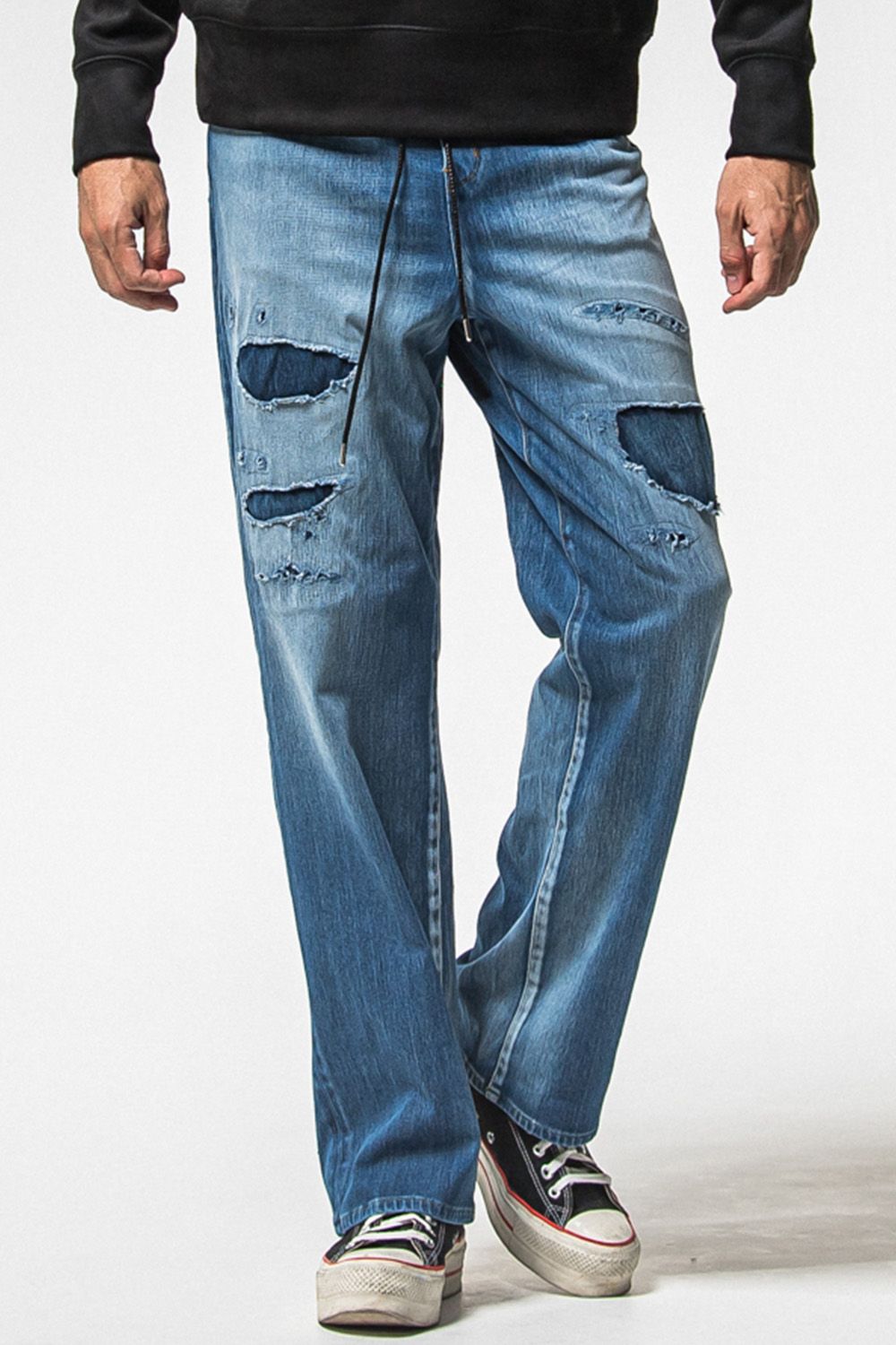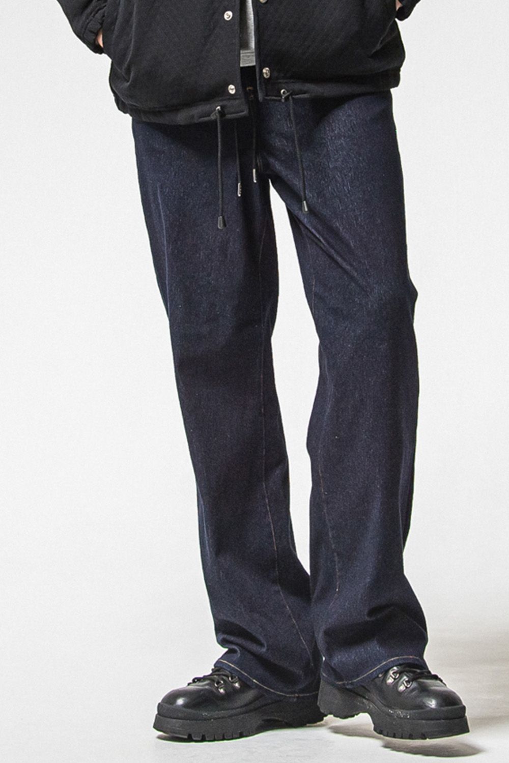 デニムジャージ素材を使用した今までで一番太いバギーシルエットのパンツ、10オンス程度のライトな生地感、見た目以上に最初から柔らかくストレスフリーの快適な穿き心地、様々なコーディネートに使用できる万能アイテムです。