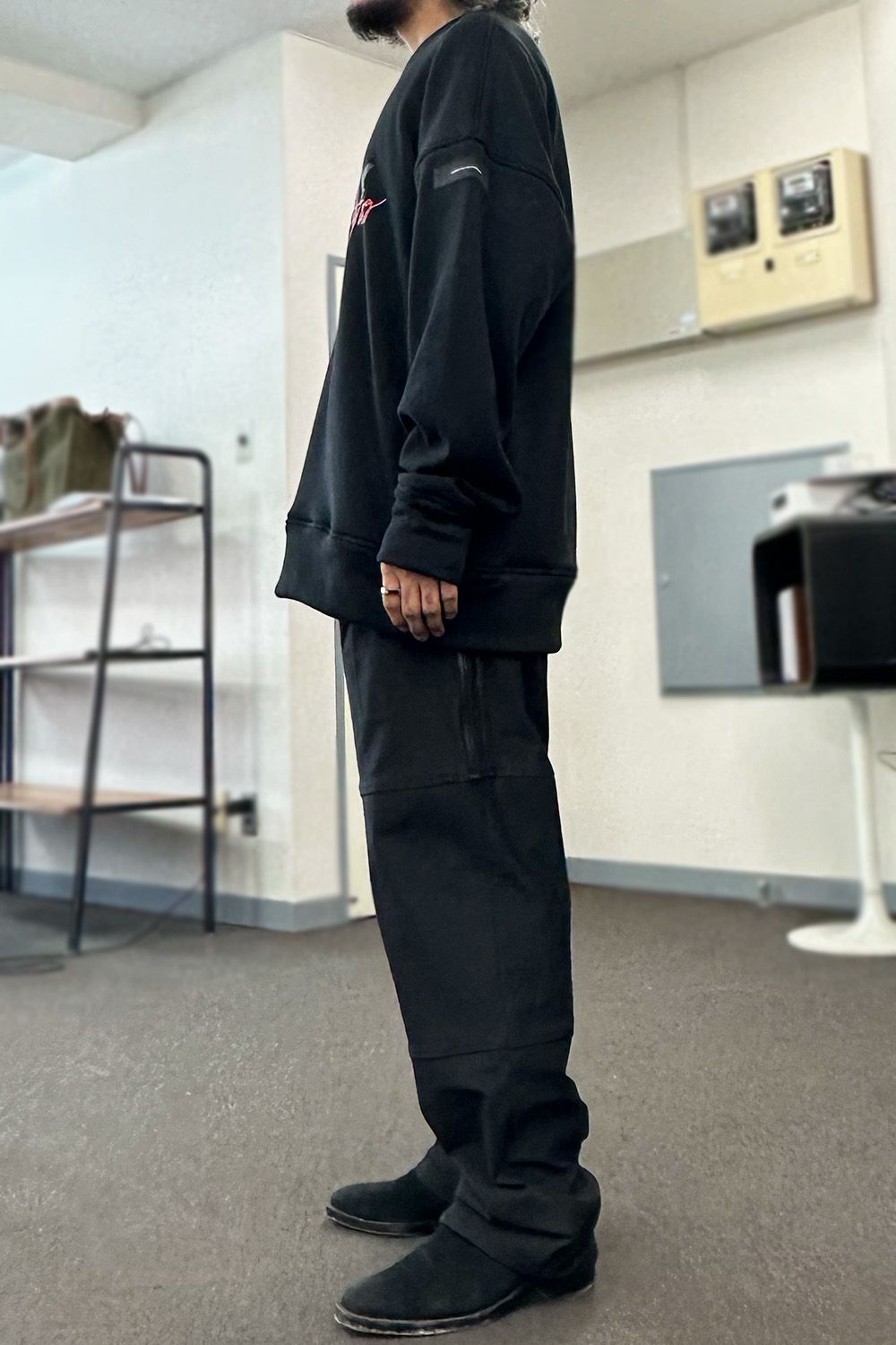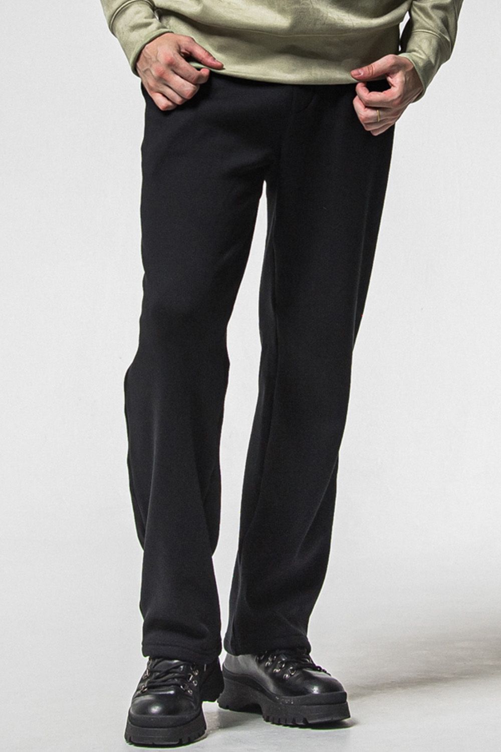 保温性の高い裏起毛素材を使用した程よくルーズなセミワイドシルエットのワイドタックパンツ、滑らかで厚みのある上質で高級感のあるスウェット生地が使用されています。ストレスフリーでシンプルに使い勝手が良く保温性にも長けたスウェットパンツに見えない便利なパンツです。