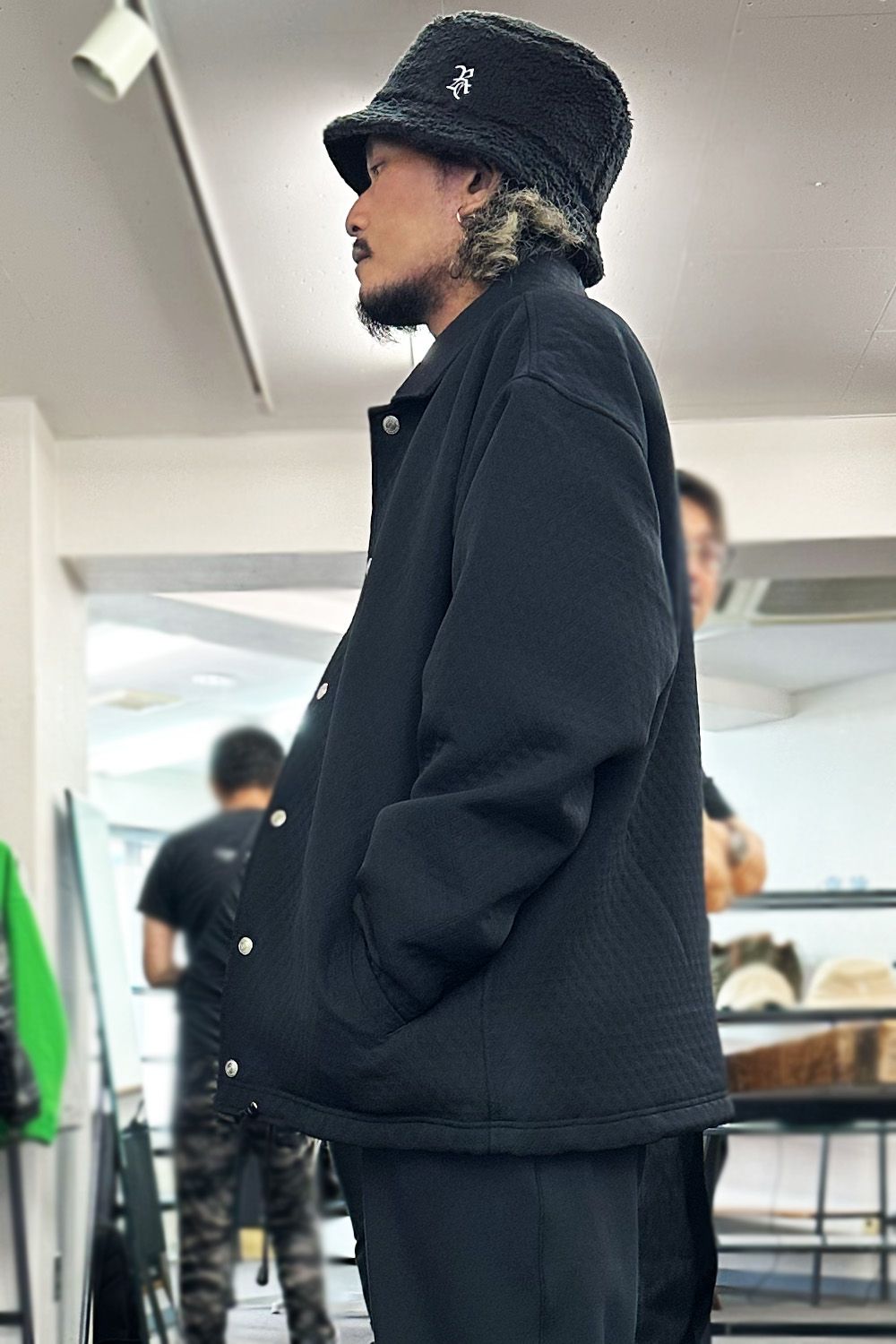 ・・・最後は、冬の寒い時期に、頭もボアのバケットハットを!色々と帽子被ってますが、個人的にRESOUNDのハットは深さやツバのバランスがよく使いやすいのでおすすめです!