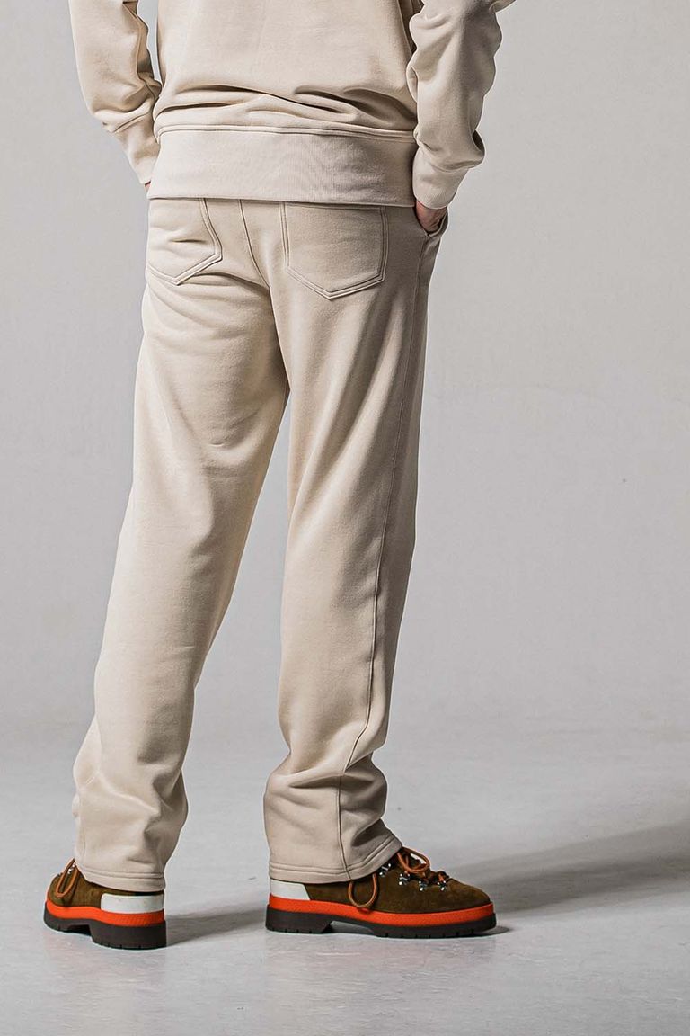 裏毛といえば膝が出たり型崩れがしやすい素材ですが、そのデメリットを解消するために、裏糸をポリエステル、表糸はコットンで仕上げられています。