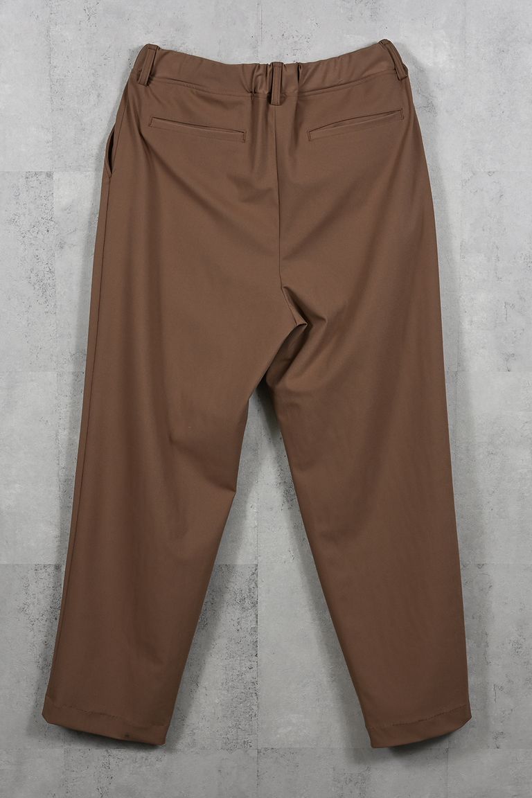 ヒップのカーブのパターンに拘り、股上が深く、ゆとりのある腰回りとワタリ、ややゆるいテーパード。