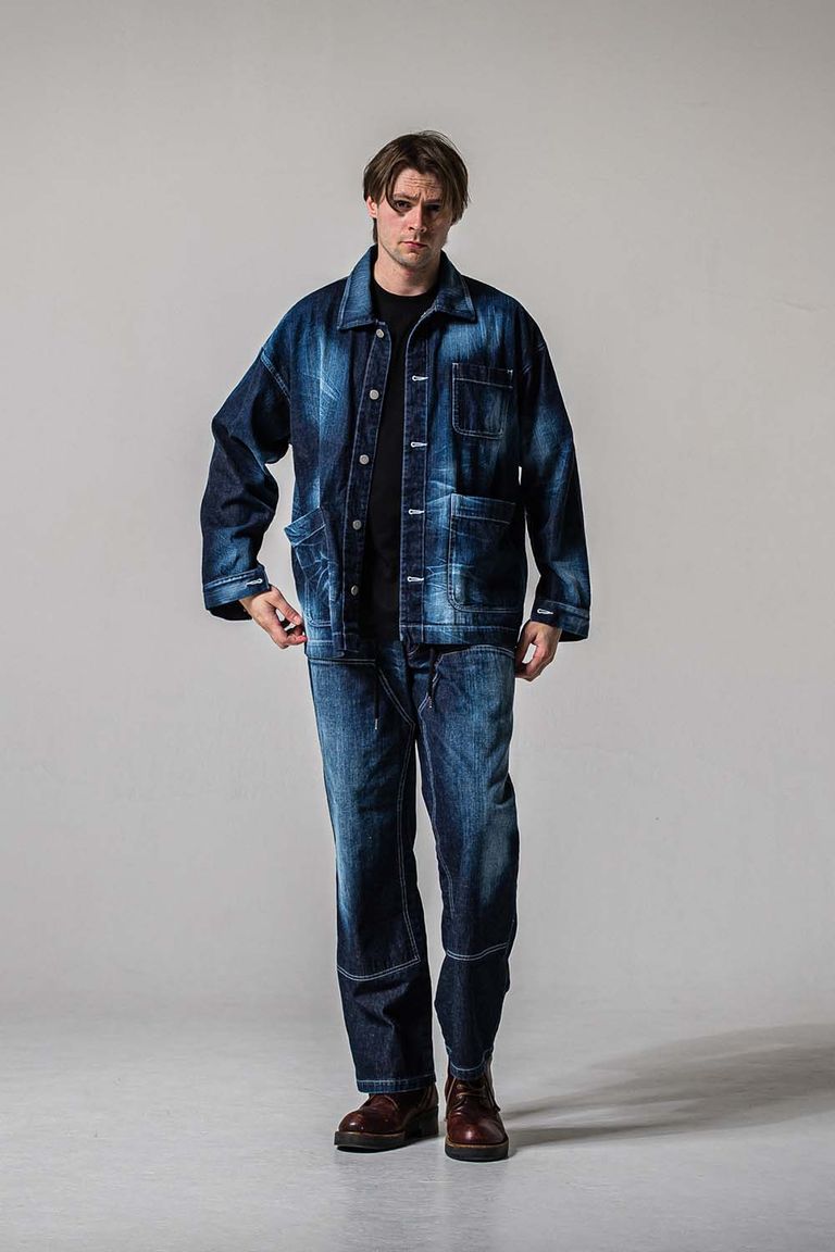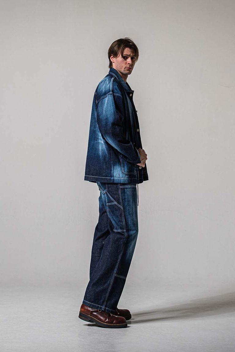 徳島県で本藍ロープ染色を施し、リアルなヴィンテージ感とアタリを楽しめるように横糸をルーズに織り、柔らかく着心地の良い生地に仕上がっています。