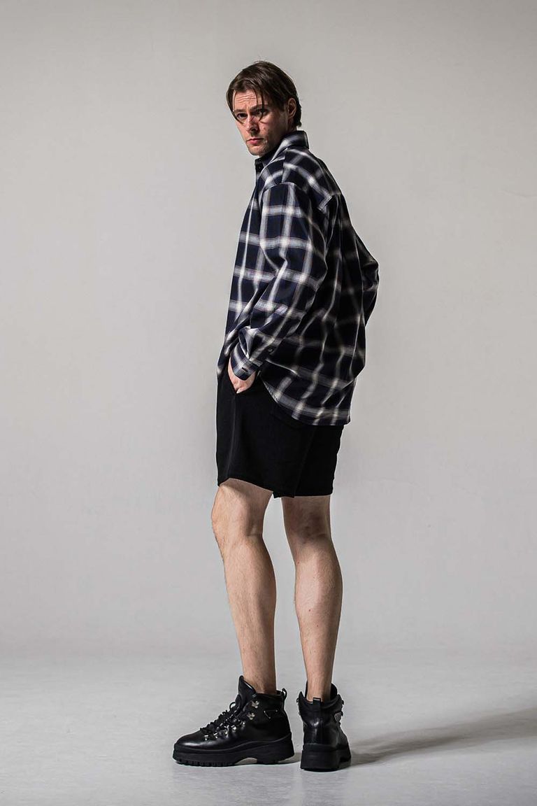 深めの股上とやや短いレングスと、ルーズでワイドなシルエットが程良い抜け間と、オーバーサイズのトップスと相性も良くストリートスタイルにマッチするシルエットとなります。