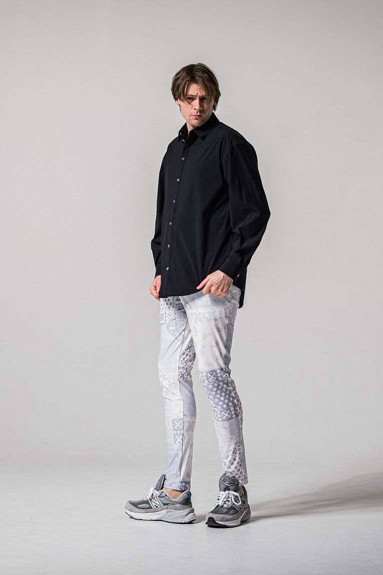 スラックスはもちろん、デニムとも相性が良く、スキニーからワイドパンツなど、パンツのシルエットも選ばない仕上がり。