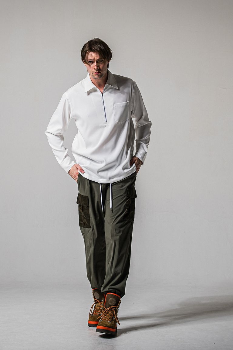 UVカット90%、速乾性やストレッチ性といった機能も充実したドレープ感のあるエレガントな素材。