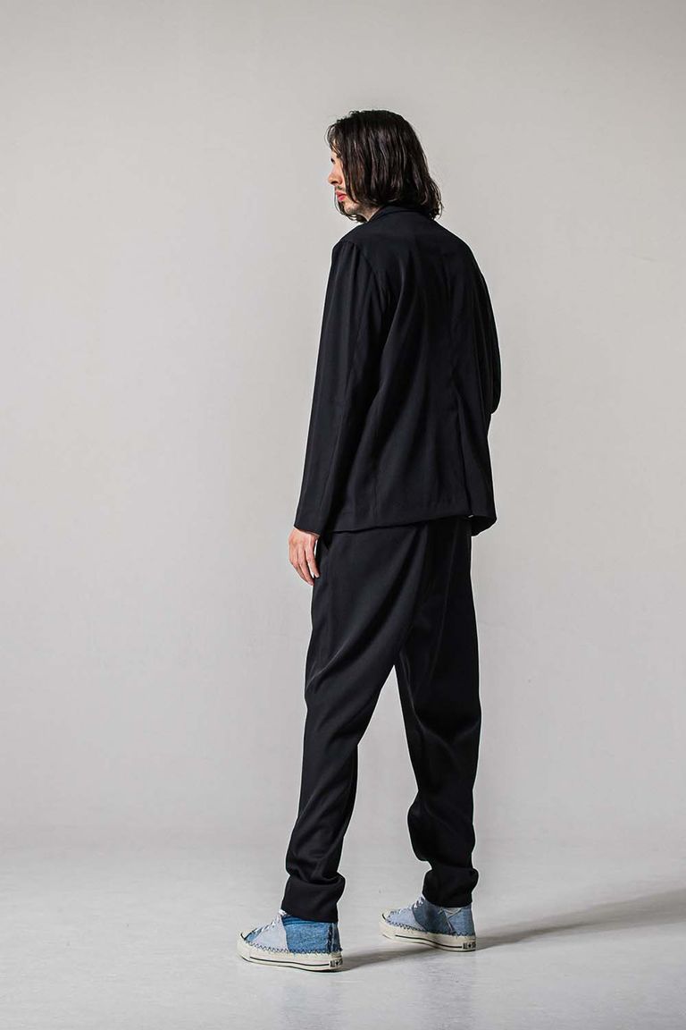 オリジナリティー溢れるジャージ素材の、柔らかさを活かしつつ、肩パット入れず、プレスをかけ、カジュアルに着れる一枚に。
