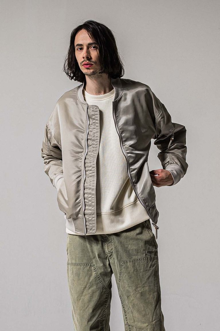 軽快な裏地なしドロップショルダーフライトジャケット。