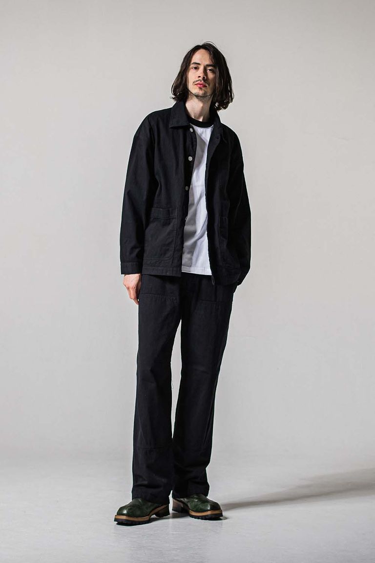徳島県で本藍ロープ染色を施し、リアルなヴィンテージ感とアタリを楽しめるように横糸をルーズに織り、柔らかく着心地の良い生地に仕上げられています。