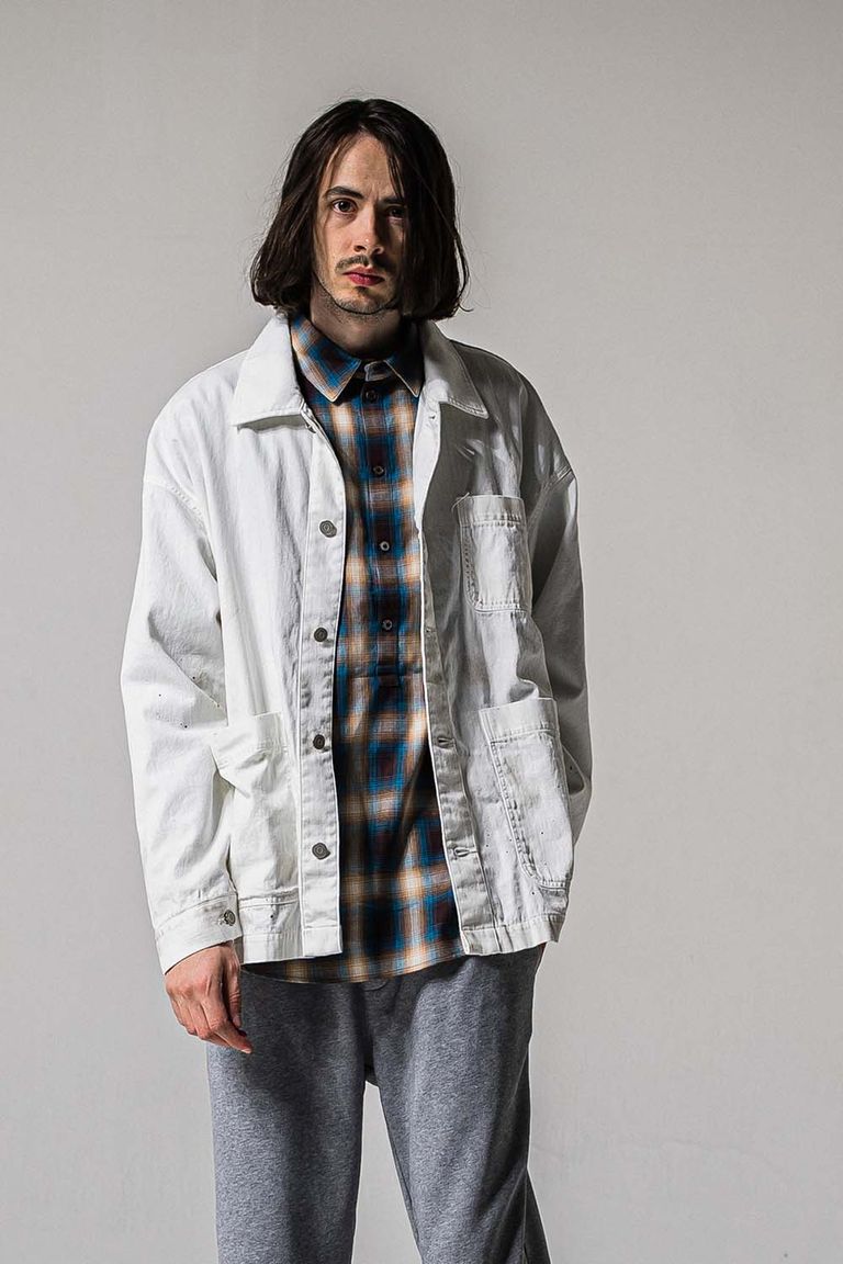 年中着れるように考慮したシャツ生地のデニムジャケット。