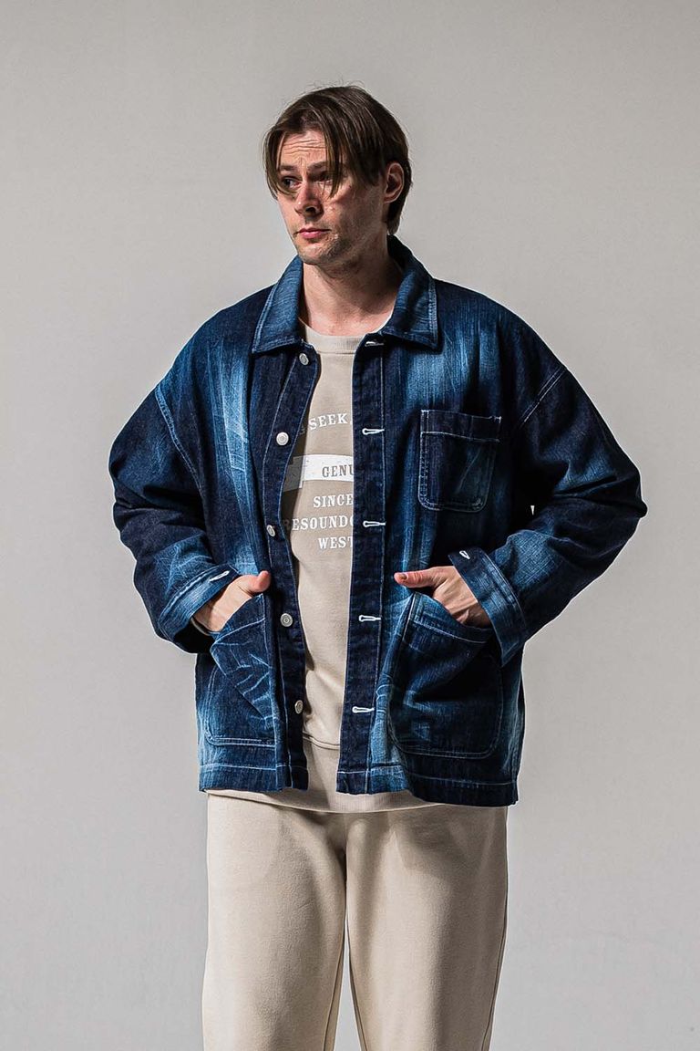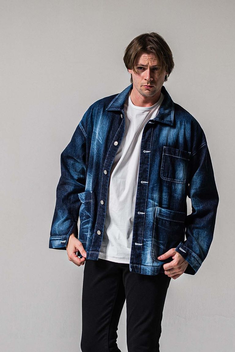 年中着れるように考慮したシャツ生地のデニムジャケット。