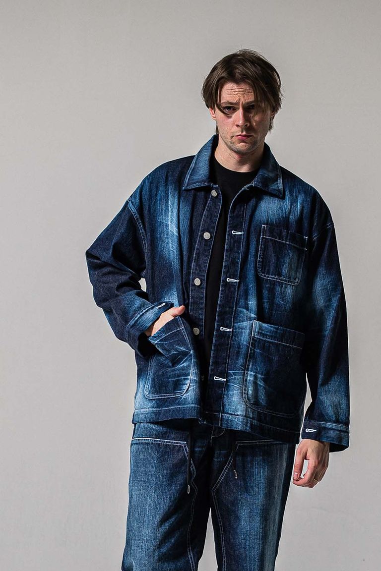 新型ライトデニムカーバーオールジャケット。
