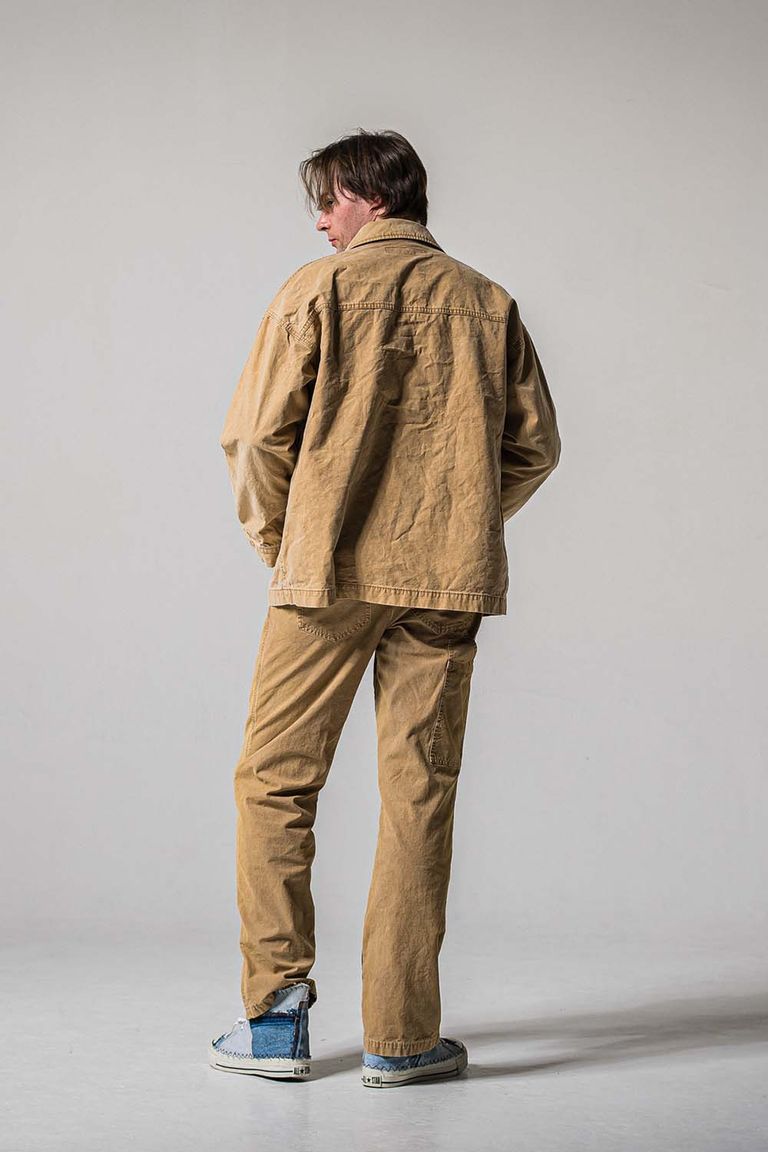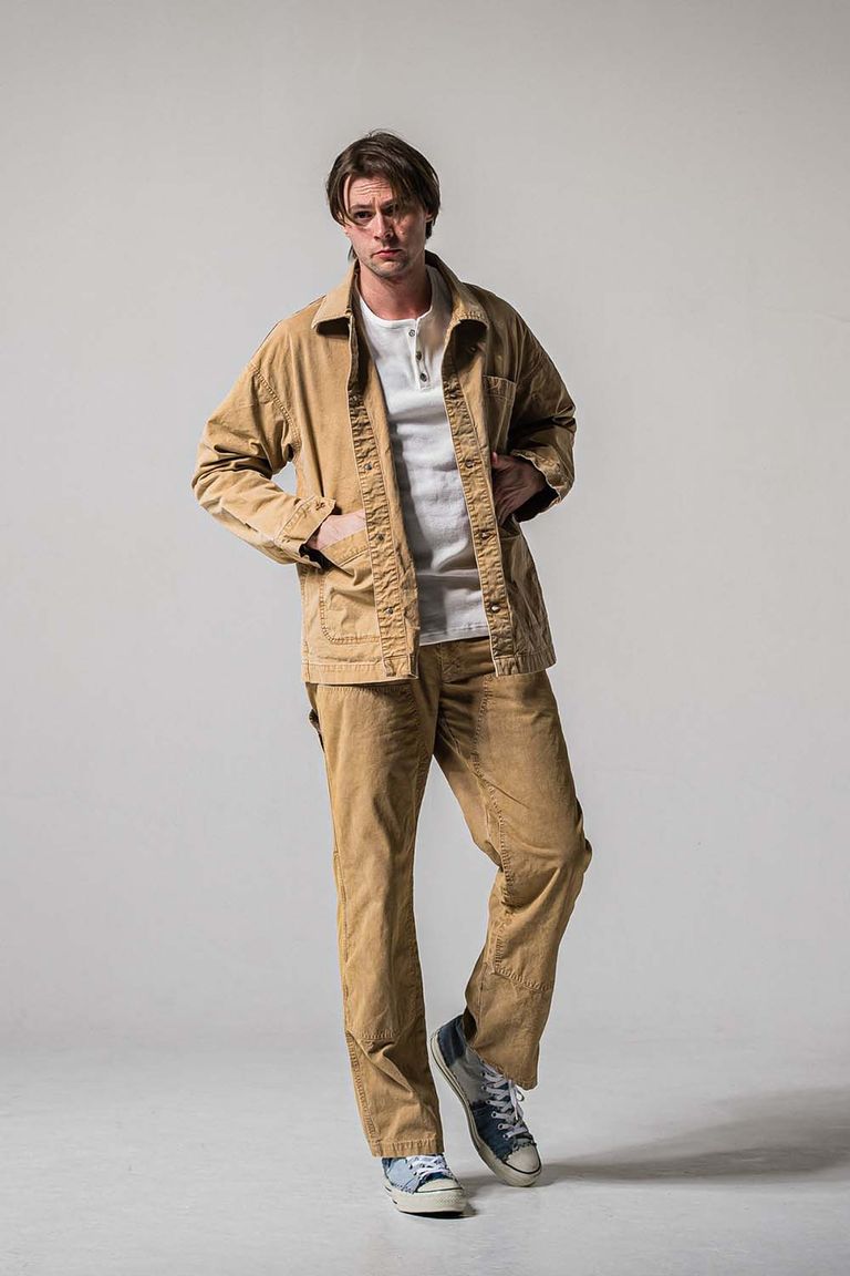 縦横糸を硫化染料で染め上げた14番手の単糸を織り上げたヴィンテージを再現した表面の凹凸と染料が、経年変化のヴィンテージ感を最大限に引き出してくれます。