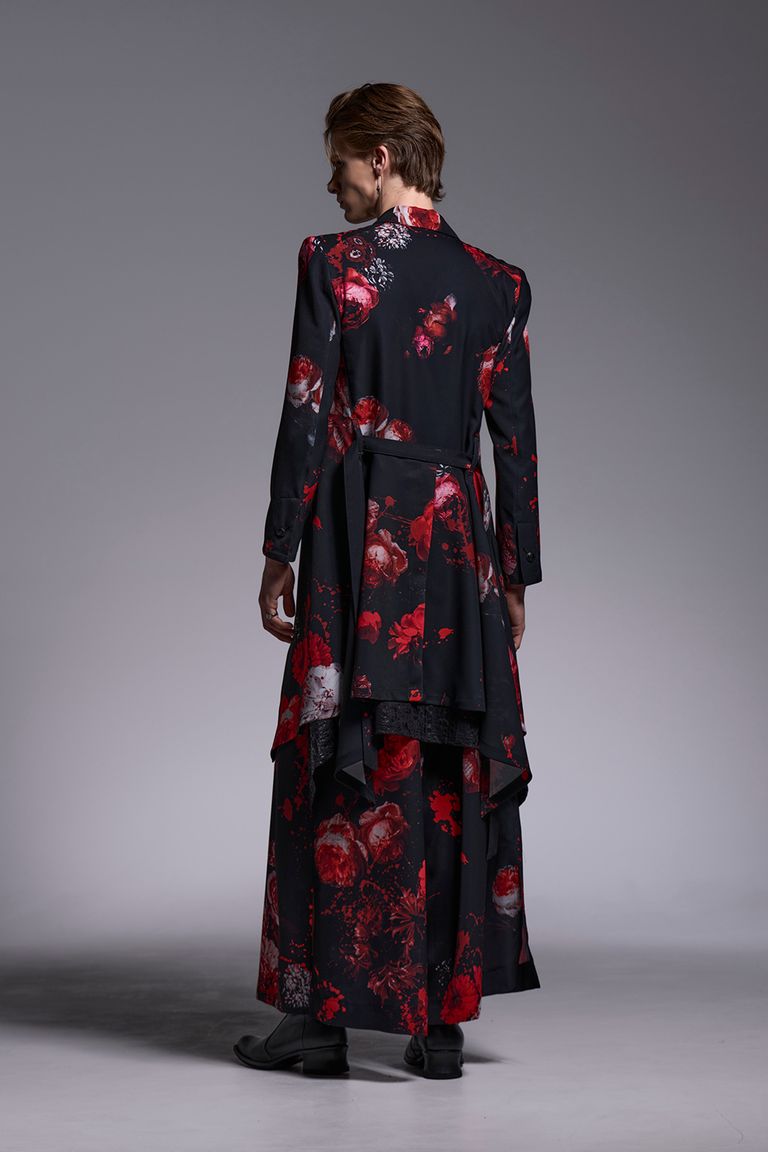 Black Flora Gabardine Flare Jacket / ブラックフローラギャバジン ロングジャケット