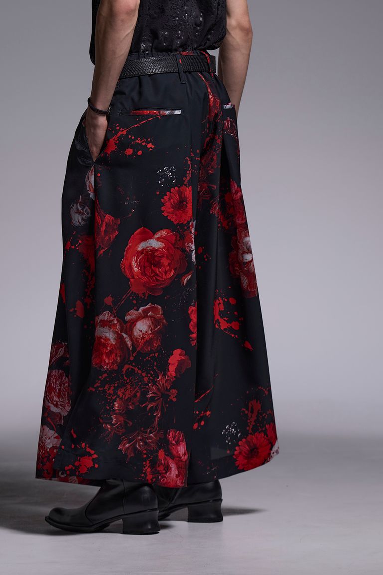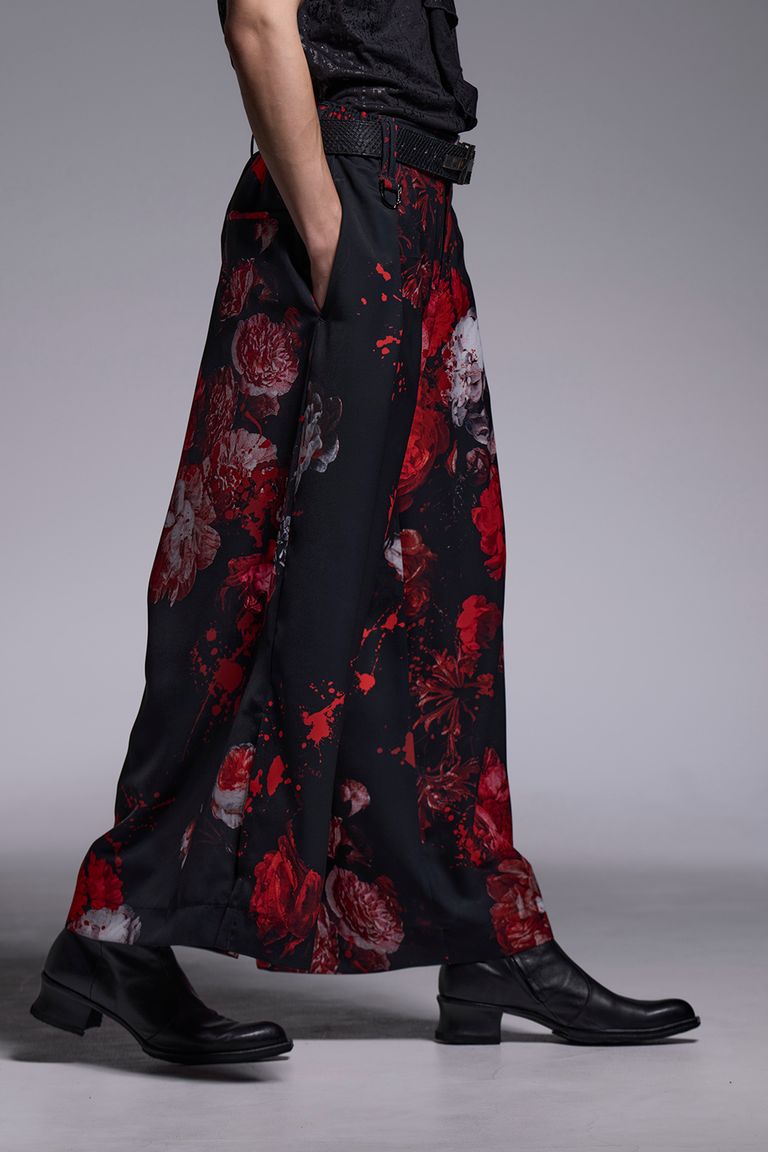 Black Flora Gabardine Wide Tuck Slacks / ブラックフローラギャバジン ワイドタックスラックス