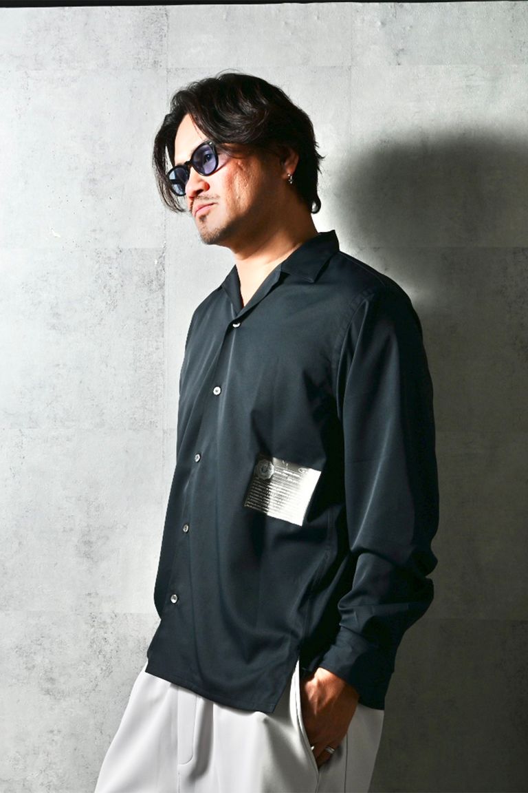パブロエスコバルの遺書の一部を転写したシンプルながら存在感のあるオープンカラーシャツ。