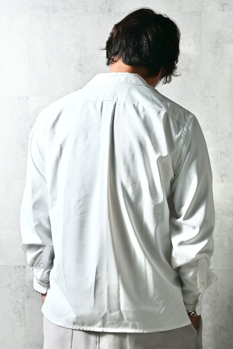 パブロエスコバルの遺書の一部を転写したシンプルながら存在感のあるオープンカラーシャツ。