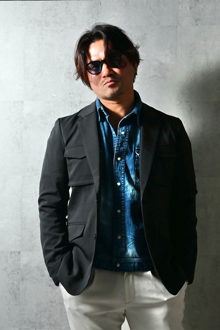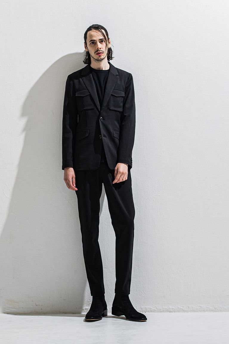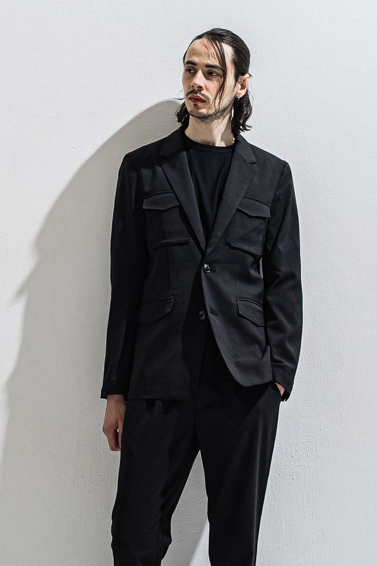 アメリカ軍フィールドジャケットのディティールを入れた、タイトフィットの2Bテーラードジャケット。