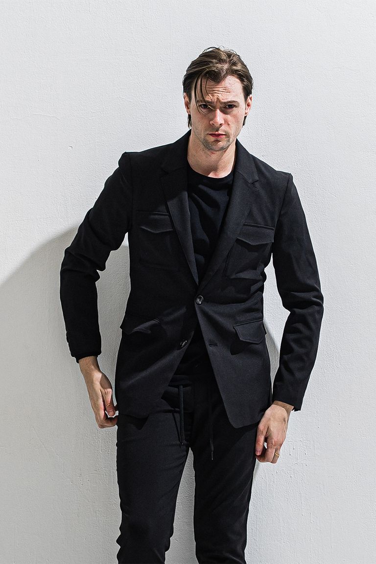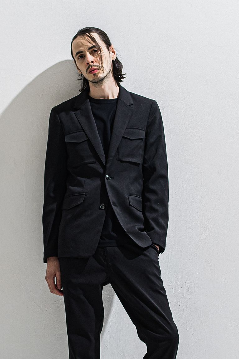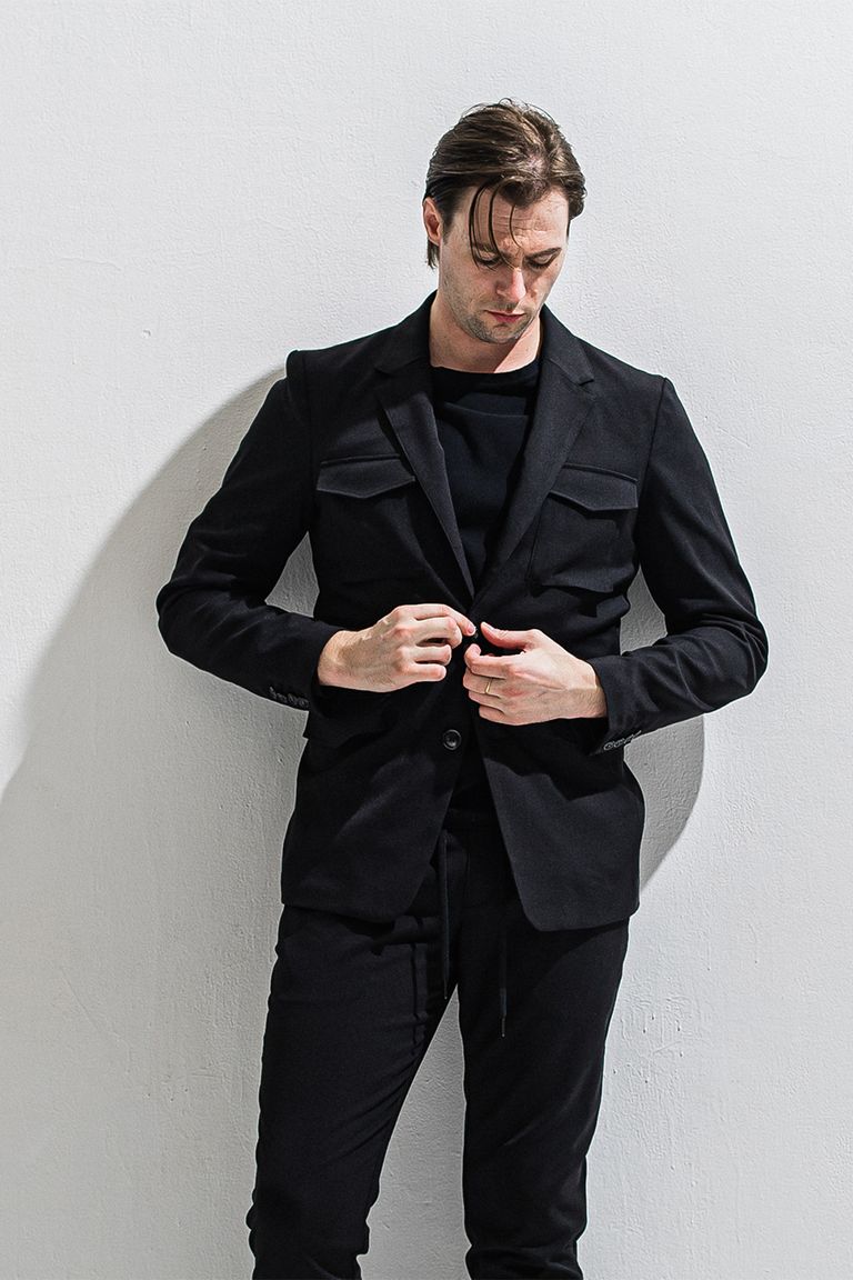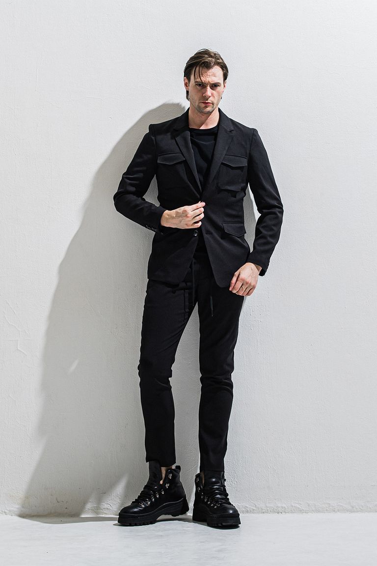アメリカ軍フィールドジャケットのディティールを入れた、タイトフィットの2Bテーラードジャケット。