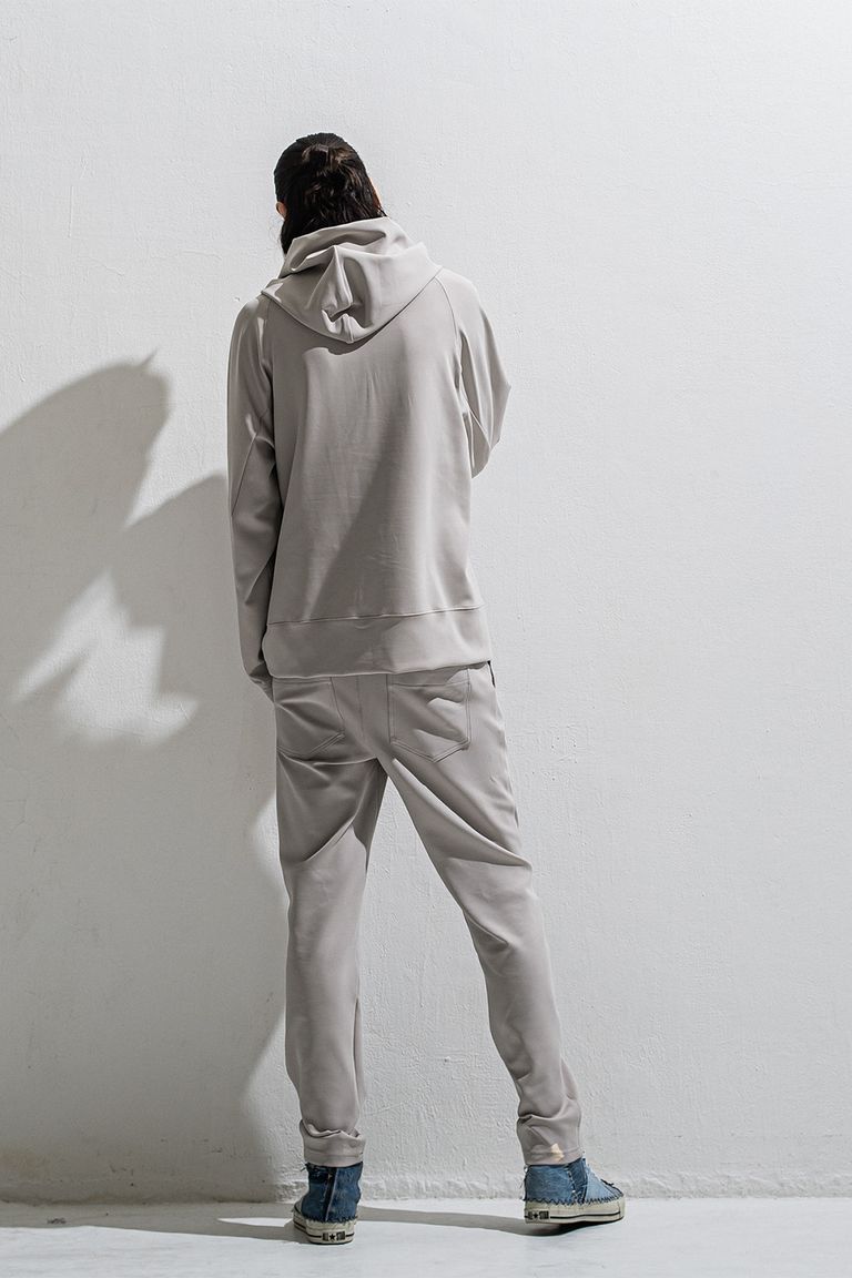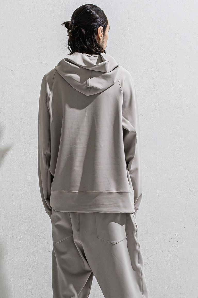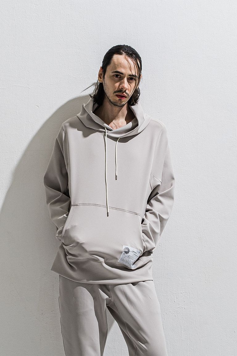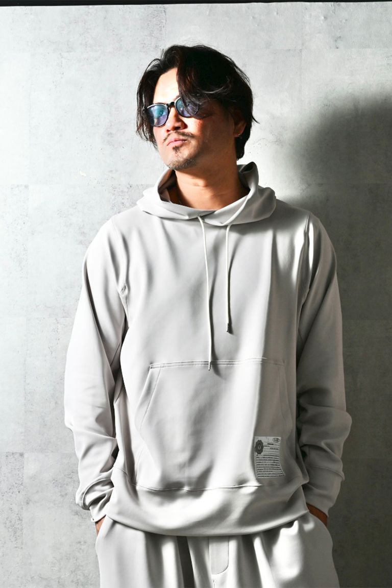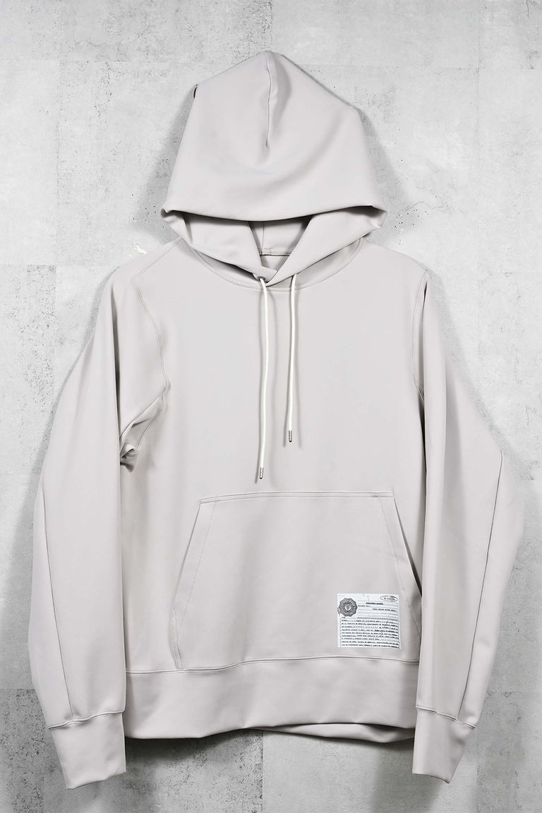 パブロエスコバルの遺書の一部を転写した、シンプルながらシルエットと素材に拘ったプルオーバーパーカー。
