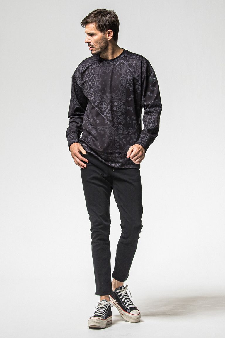 PAISLEY BACK FLEECE DROP TRAINER / 裏起毛 ペイズリー柄 ルーズトレーナー