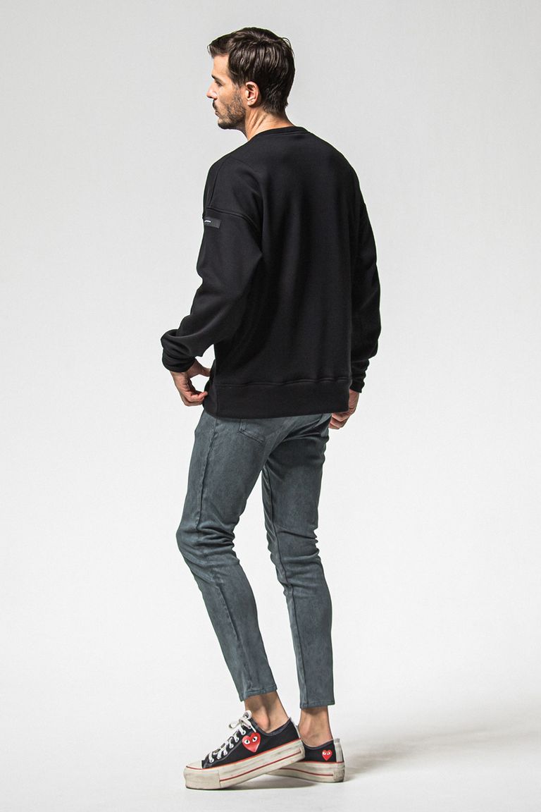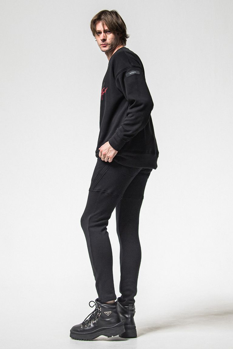 素材はイタリアの織り機を基に最新型織り機を用い、スウェットとポンチローマを掛け合わせたダブル編みで、表面は度詰めで織り上げ糸はエジプトからコットンを紡績し、裏は特殊起毛シルキータッチなベロアフリースボアに仕上がっています。