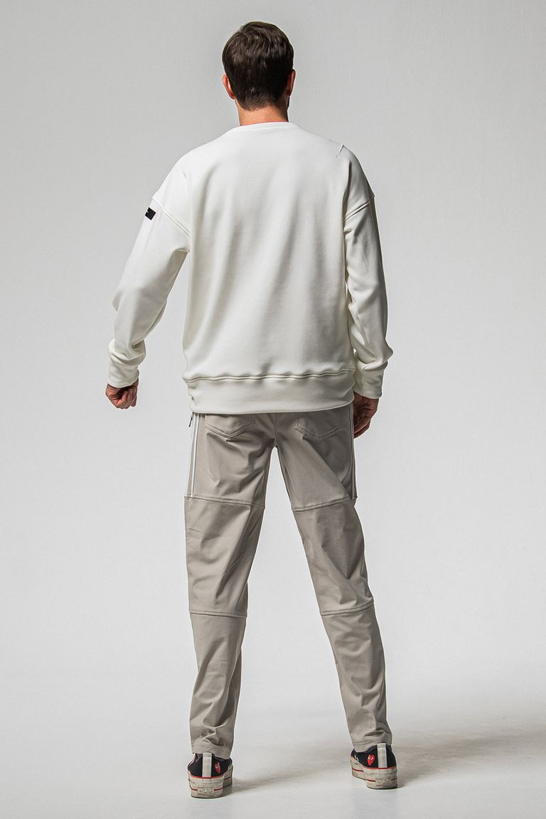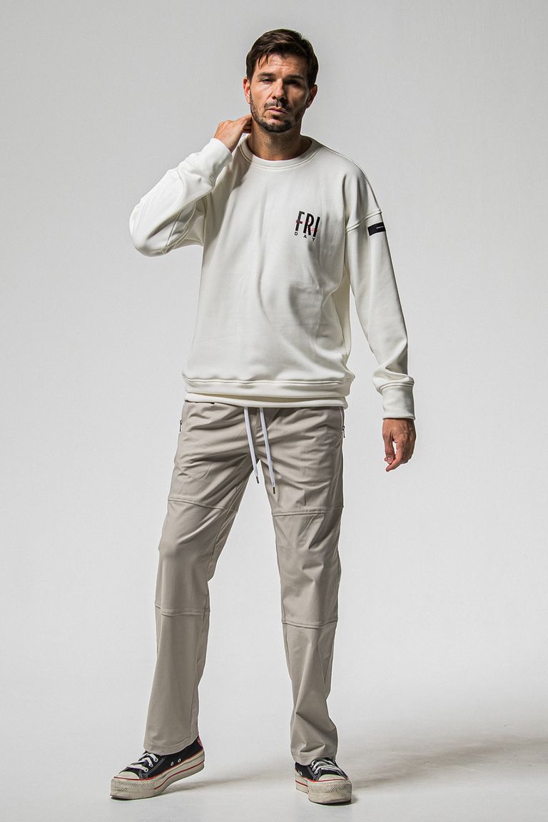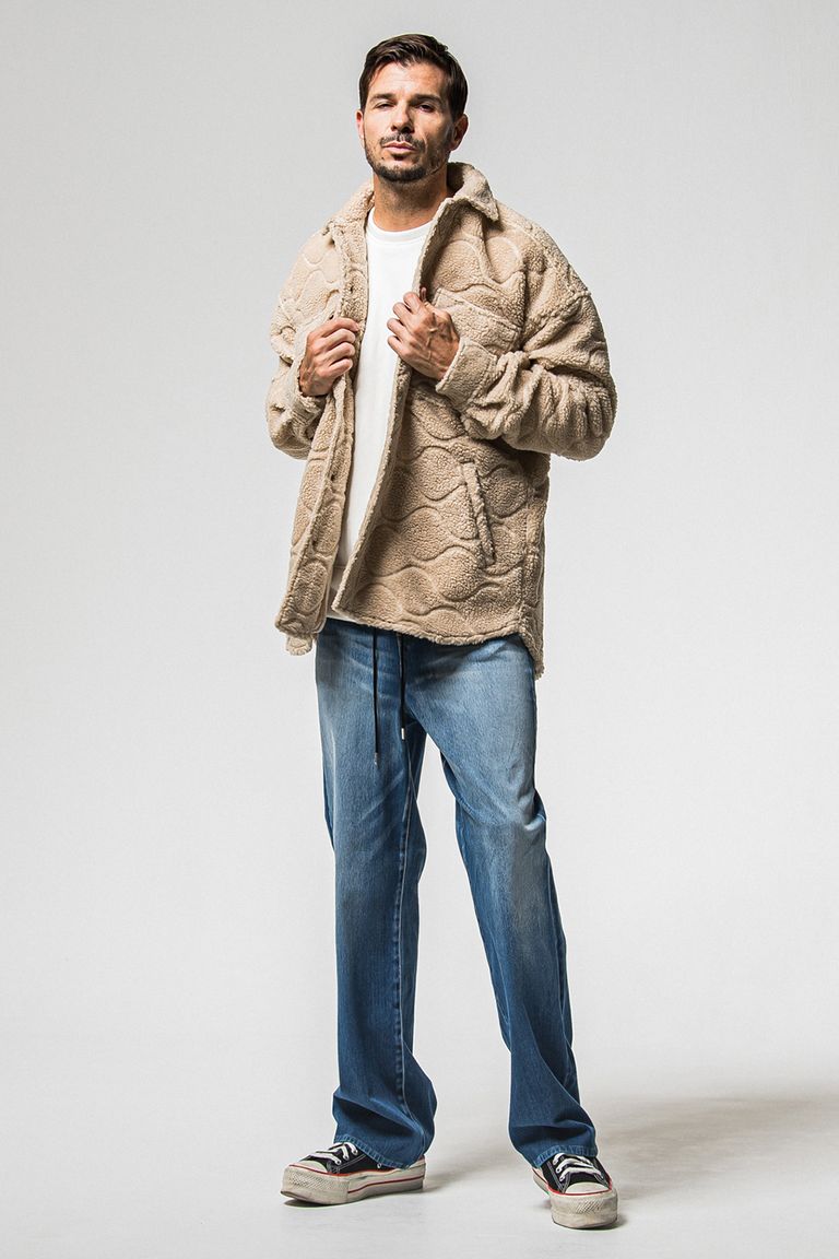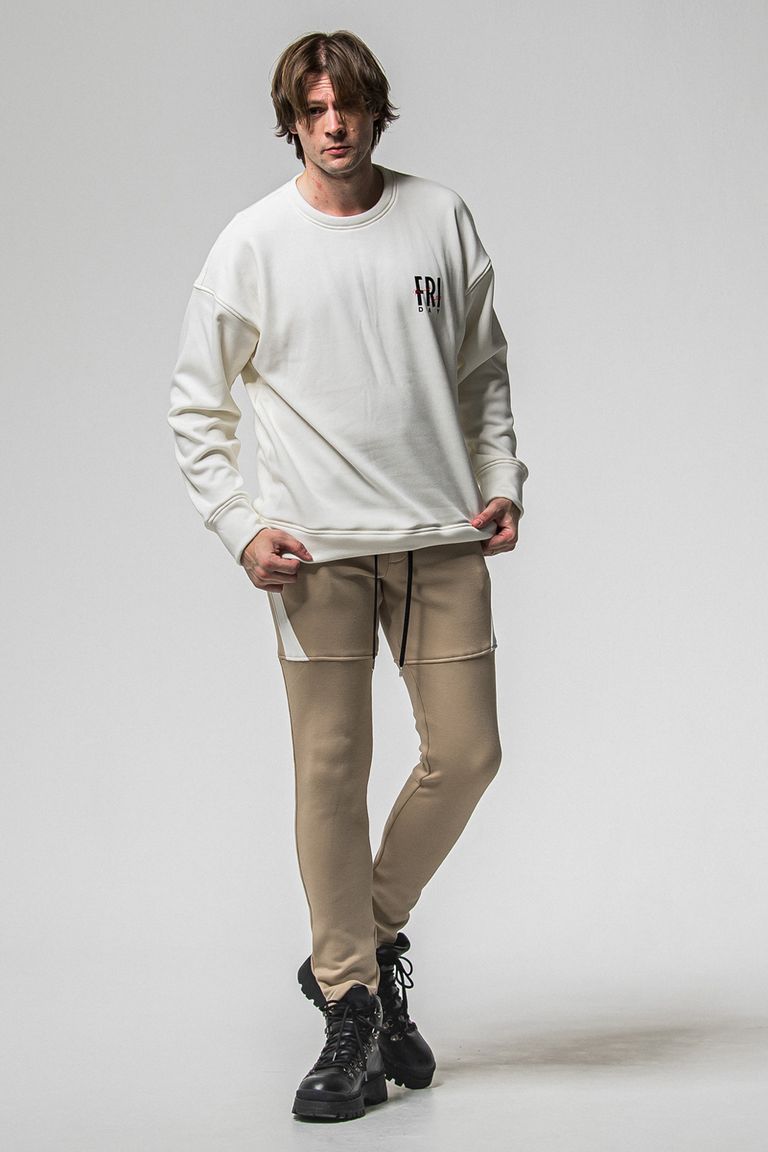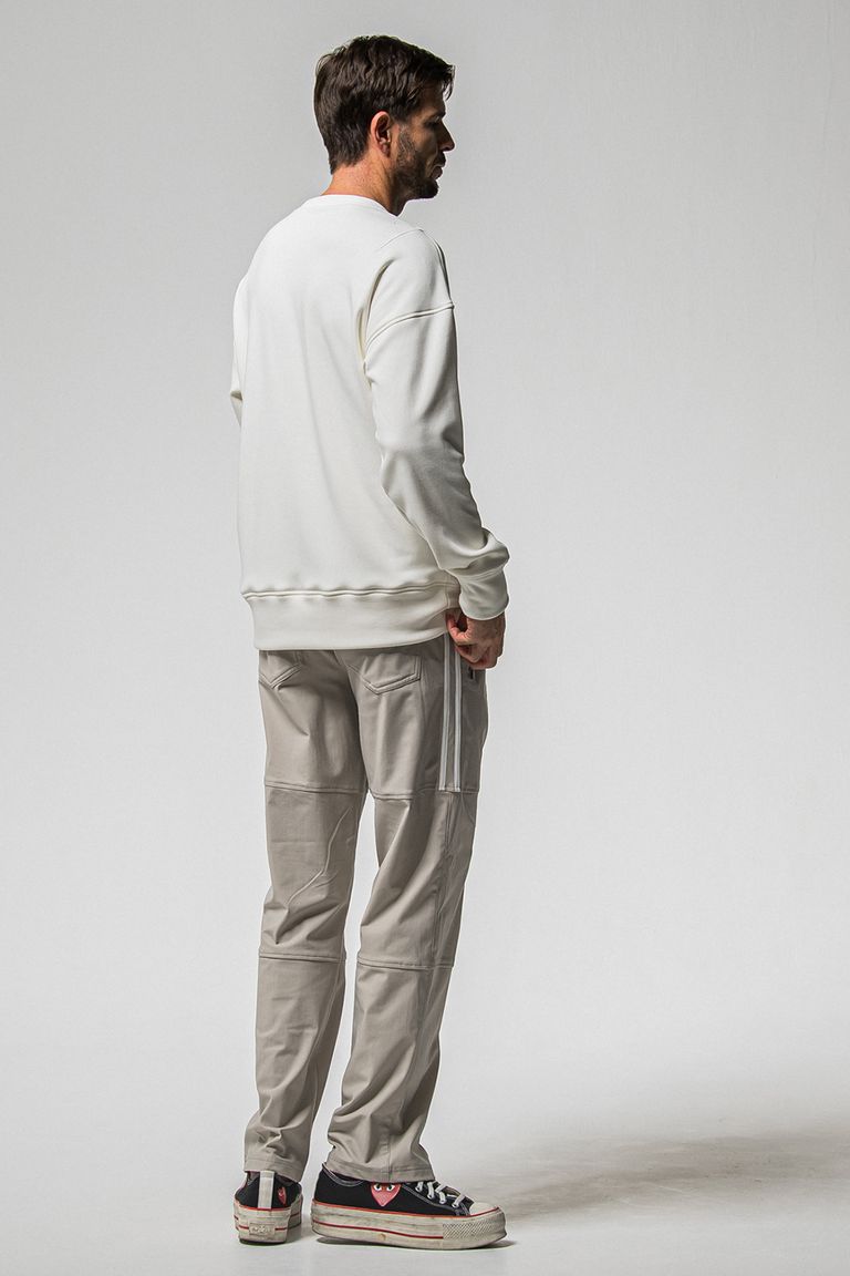 素材はイタリアの織り機を基に最新型織り機を用い、スウェットとポンチローマを掛け合わせたダブル編みで、表面は度詰めで織り上げ糸はエジプトからコットンを紡績し、裏は特殊起毛シルキータッチなベロアフリースボアに仕上がっています。